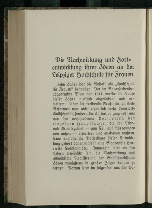 Die Nachwirkung und Fortentwicklung ihrer Ideen an der Leipziger Hochschule für Frauen.