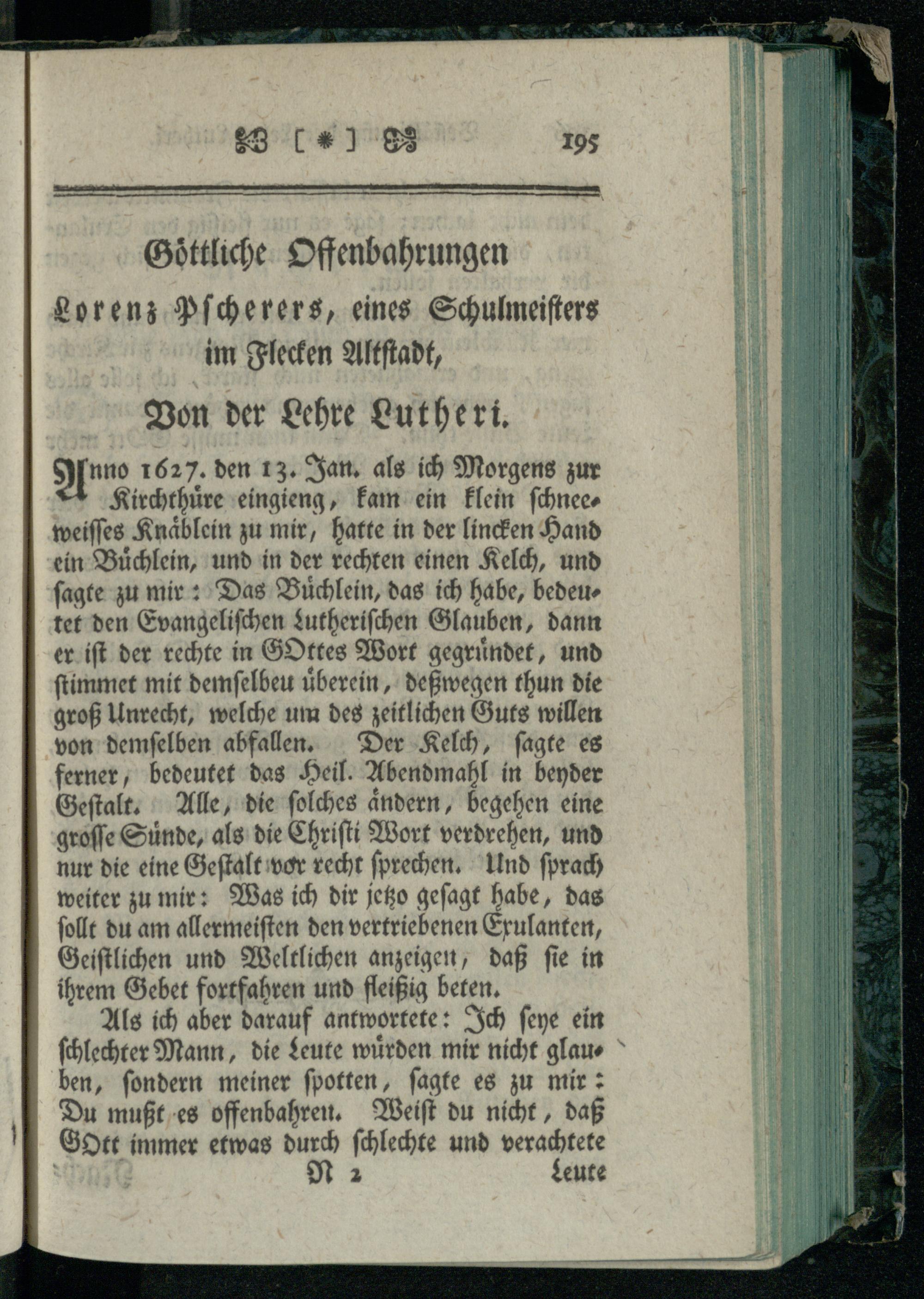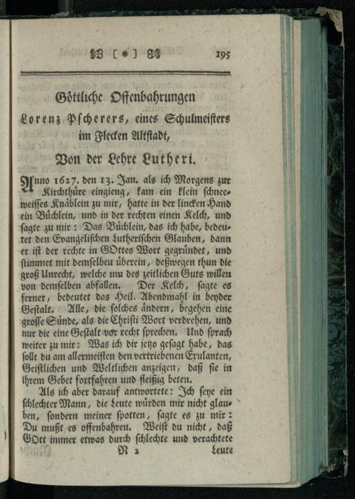 Göttliche Offenbahrungen Lorenz Pscherers, eines Schulmeisters im Flecken Altstadt,...