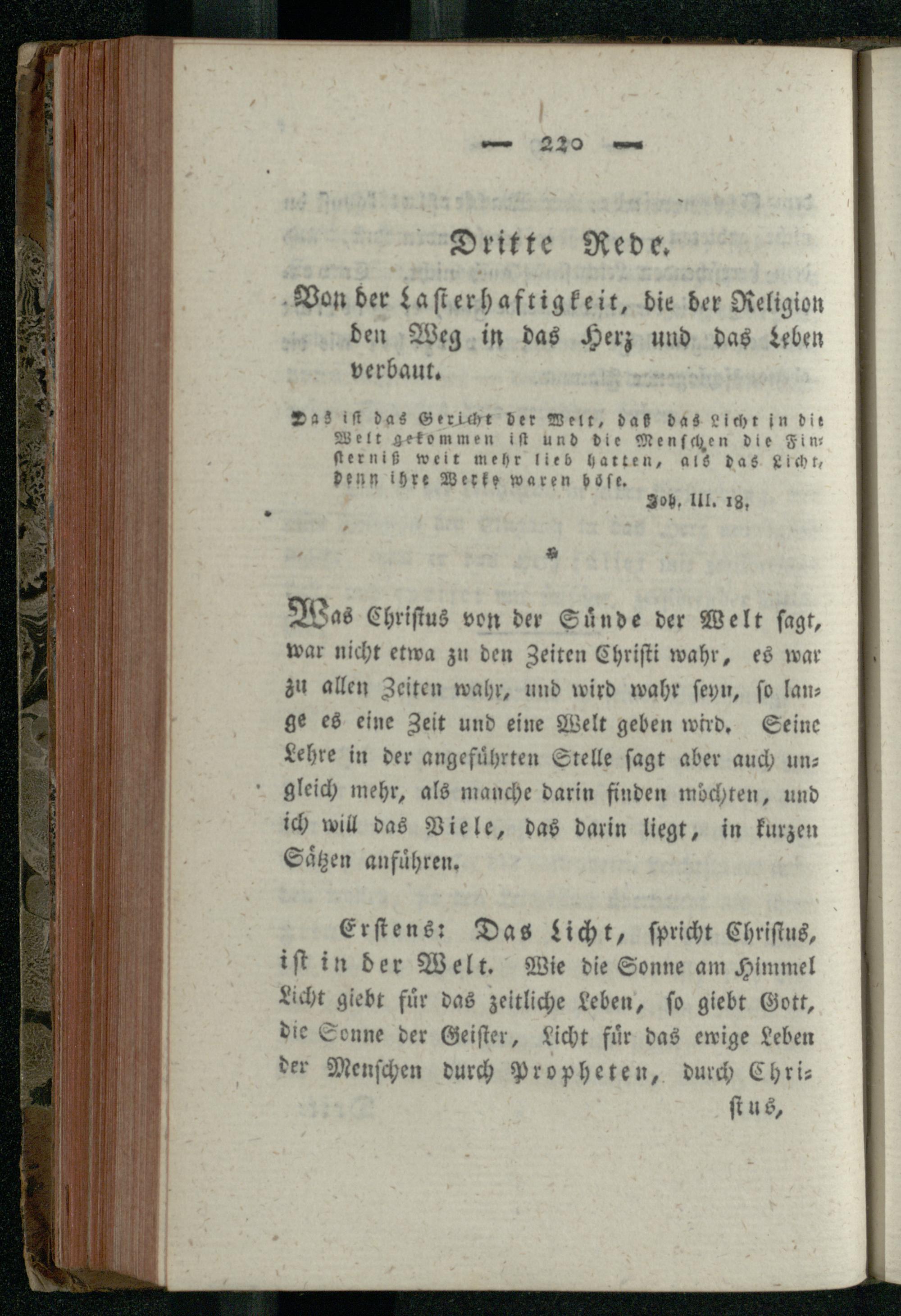 Dritte Rede. Von der Lasterhaftigkeit, die der Religion den Weg in das Herz und das...