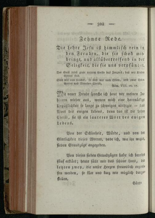 Zehnte Rede. Die Lehre Jesu ist himmlisch rein in den Freunden, die sie schon mitbringt,...