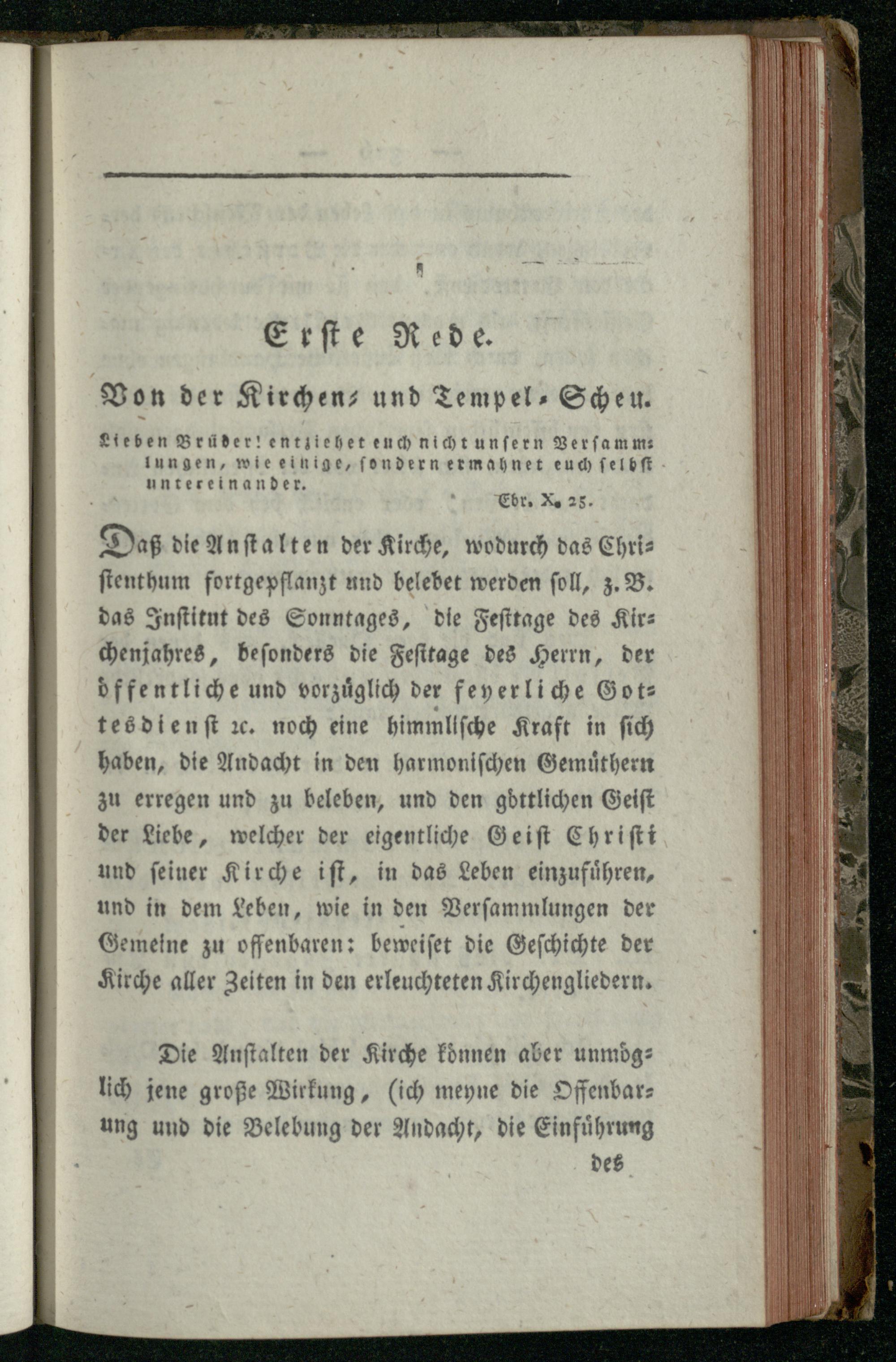 Erste Rede. Von der Kirchen- und Tempel-Scheu.