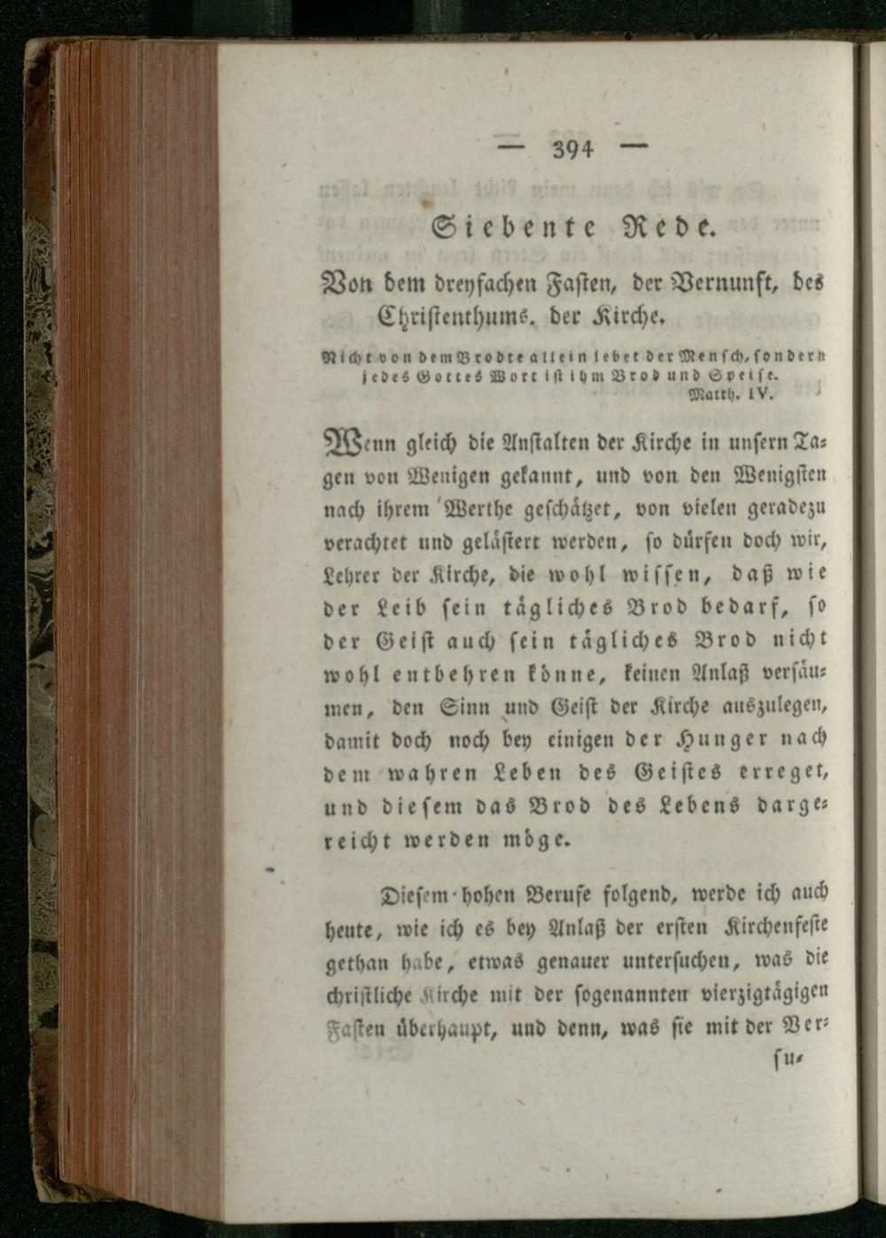 Siebente Rede. Von dem dreyfachen Fakten, der Vernunft, des Christenthums, der K...