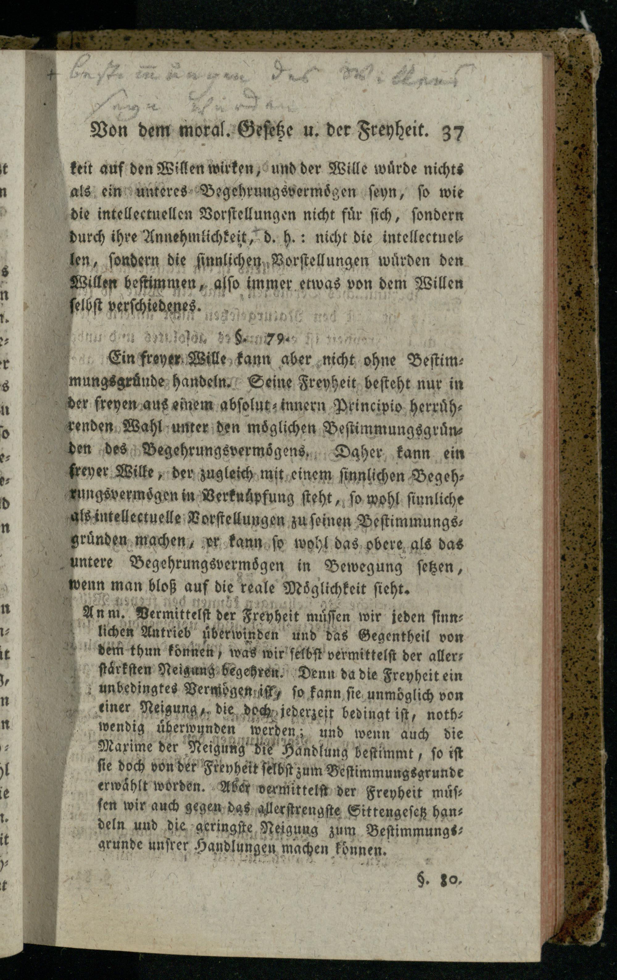 Erster Abschnitt. Von dem moralischen Gesetze und von der Freyheit, als der nothwendigen...