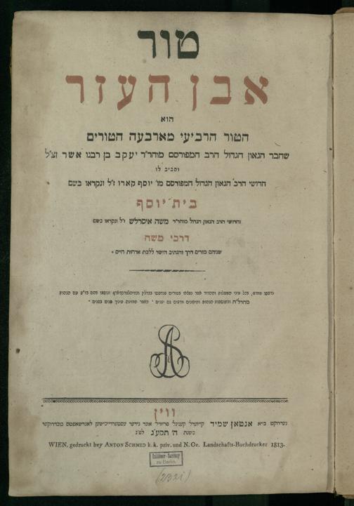 ha-Ṭur ha-reviʿi (1813) Ṭur Even ha-ʿezer : hu ha-ṭur ha-reviʿi me-arbaʿah ha-ṭurimha-Ṭur ha-reviʿi (1813) טור אבן העזר : הוא הטור הרביעי מארבעה הטורים