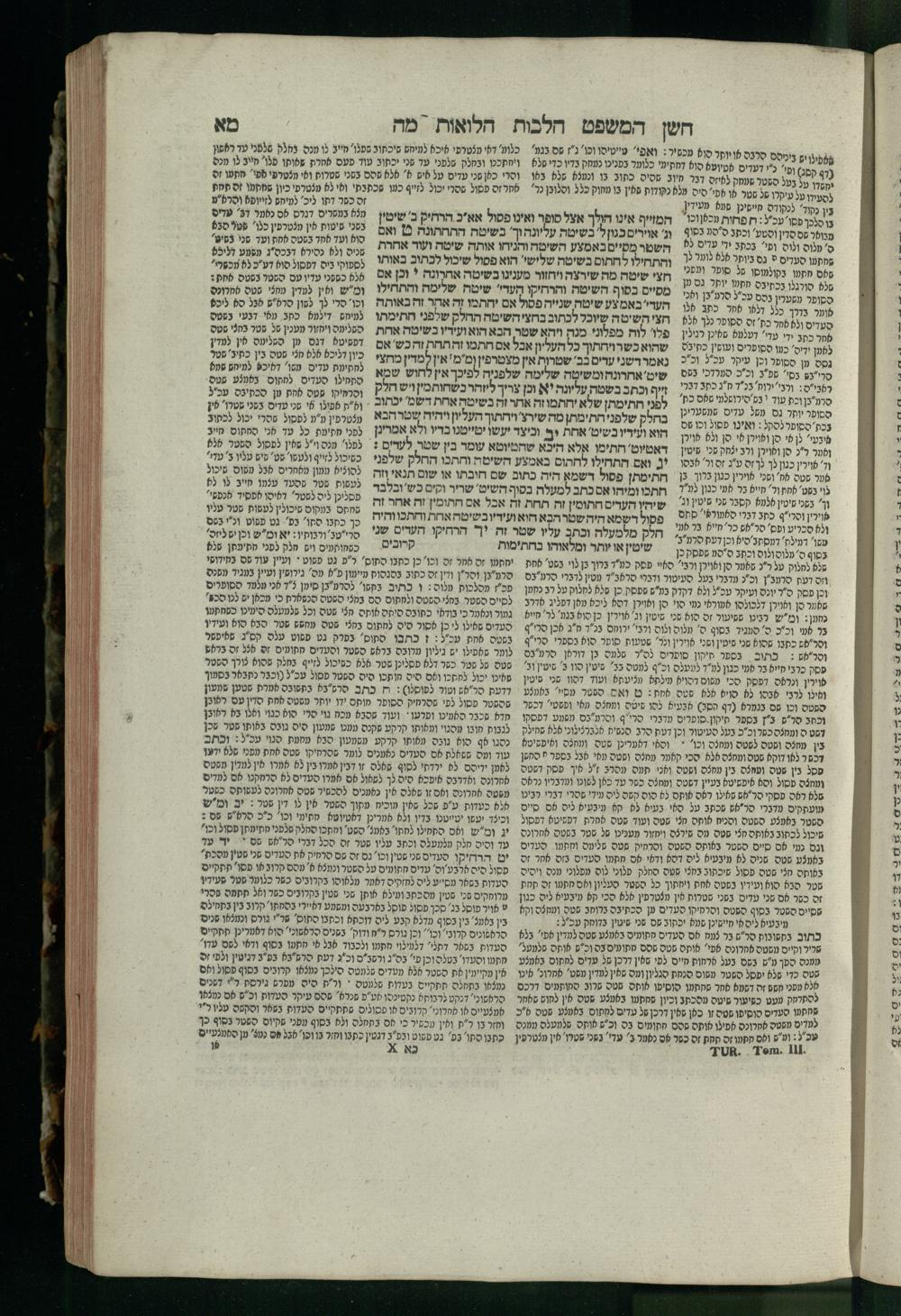 ha-Ṭur ha-shelishi, ḥeleḳ rishon (1813) Ṭur Ḥoshen ha-mishpaṭ : hu ha-ṭur ha-shelishi me-Arbaʿah ha-ṭurimha-Ṭur ha-shelishi, ḥeleḳ rishon (1813) טור חשן המשפט : הוא הטור השלישי מארבעה הטורים