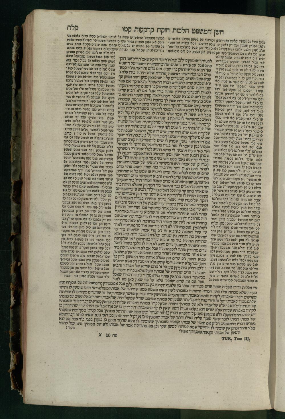 ha-Ṭur ha-shelishi, ḥeleḳ rishon (1813) Ṭur Ḥoshen ha-mishpaṭ : hu ha-ṭur ha-shelishi me-Arbaʿah ha-ṭurimha-Ṭur ha-shelishi, ḥeleḳ rishon (1813) טור חשן המשפט : הוא הטור השלישי מארבעה הטורים