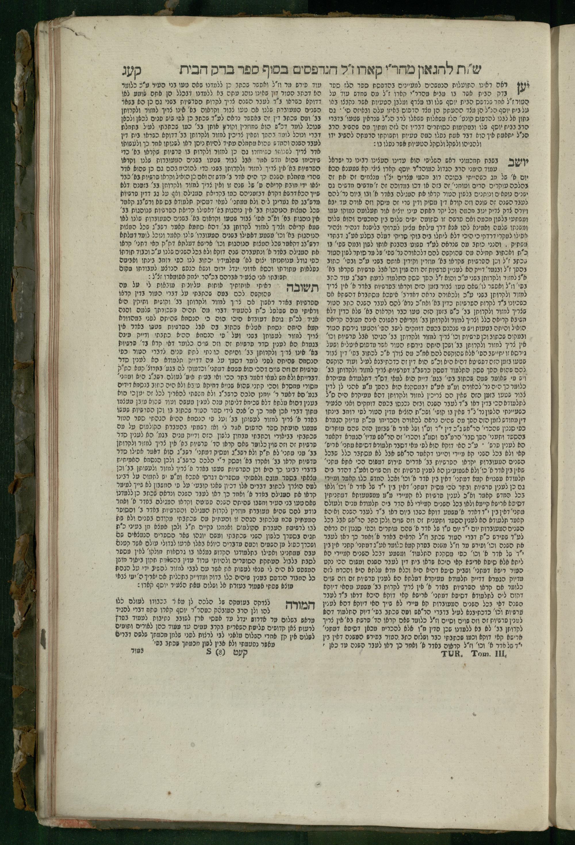 ha-Ṭur ha-shelishi, Ḥeleḳ sheni (1813) Ṭur Ḥoshen ha-mishpaṭ : hu ha-ṭur ha-shelishi me-Arbaʿah ha-ṭurimha-Ṭur ha-shelishi, Ḥeleḳ sheni (1813) טור חשן המשפט : הוא הטור השלישי מארבעה הטורים