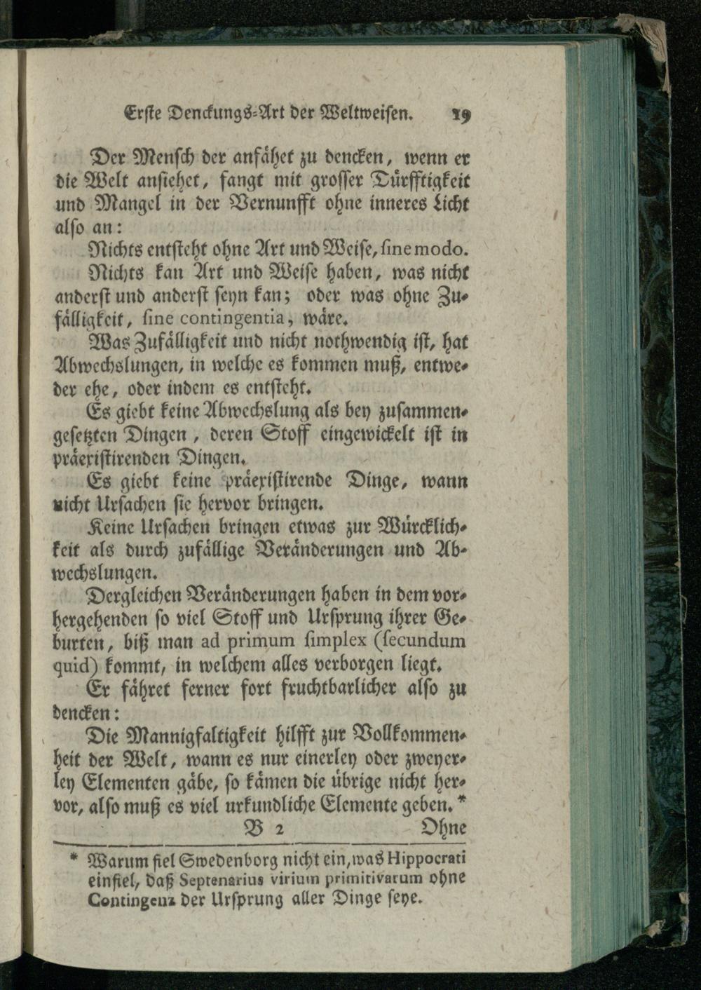 Th. 2 (1765) Der Irrdischen und Himmlischen Philosophie, Zweyter Theil, Worinnen 1. Swedenborgs. 2. Malebranche. 3. Newtons. 4. Cluvers. 5. Wolfens. 6. Ploucquets. 7. Baglius. 8. Frickers Irrdische Philosophie mit Ezechiels himmlischer Philosophie verglichen wird
