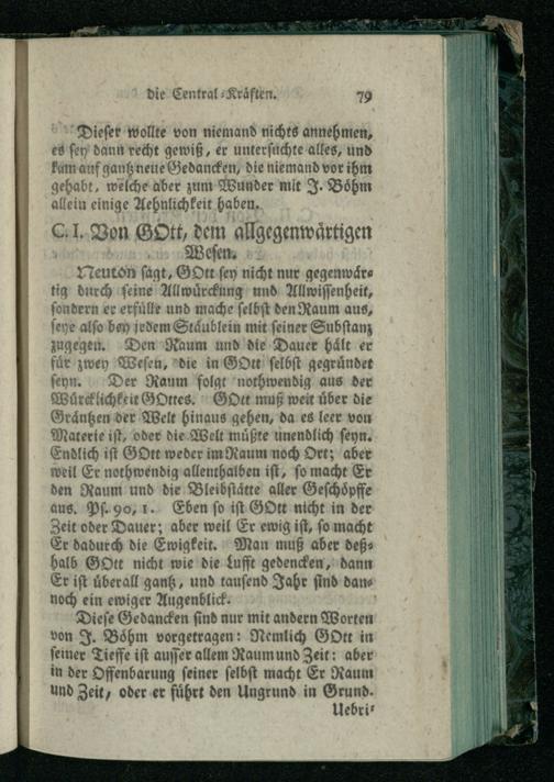 Th. 2 (1765) Der Irrdischen und Himmlischen Philosophie, Zweyter Theil, Worinnen 1. Swedenborgs. 2. Malebranche. 3. Newtons. 4. Cluvers. 5. Wolfens. 6. Ploucquets. 7. Baglius. 8. Frickers Irrdische Philosophie mit Ezechiels himmlischer Philosophie verglichen wird