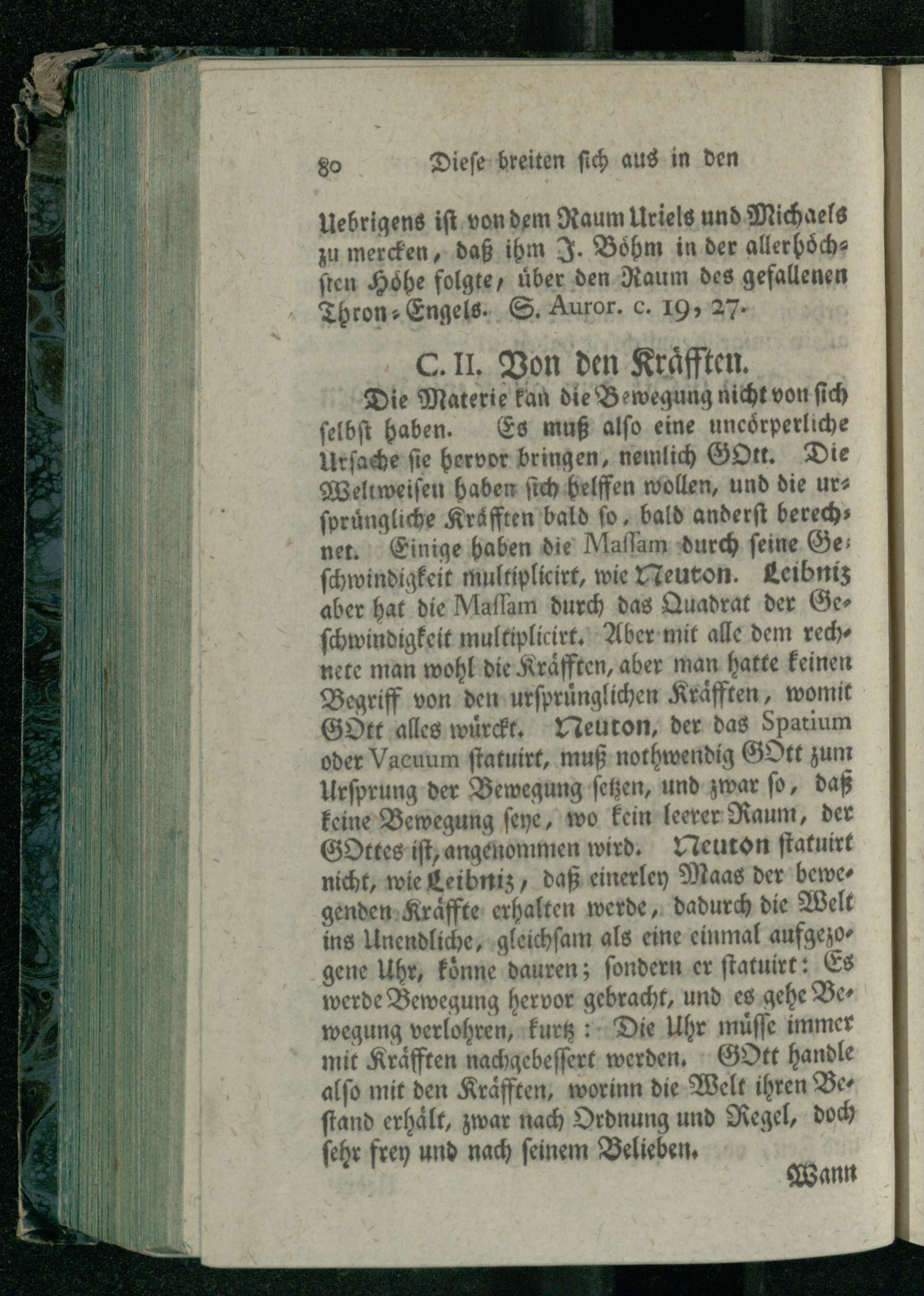 Th. 2 (1765) Der Irrdischen und Himmlischen Philosophie, Zweyter Theil, Worinnen 1. Swedenborgs. 2. Malebranche. 3. Newtons. 4. Cluvers. 5. Wolfens. 6. Ploucquets. 7. Baglius. 8. Frickers Irrdische Philosophie mit Ezechiels himmlischer Philosophie verglichen wird