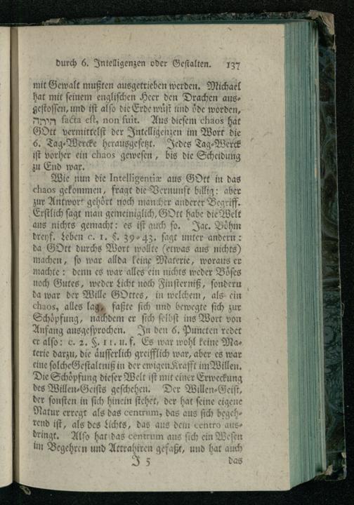 Th. 2 (1765) Der Irrdischen und Himmlischen Philosophie, Zweyter Theil, Worinnen 1. Swedenborgs. 2. Malebranche. 3. Newtons. 4. Cluvers. 5. Wolfens. 6. Ploucquets. 7. Baglius. 8. Frickers Irrdische Philosophie mit Ezechiels himmlischer Philosophie verglichen wird