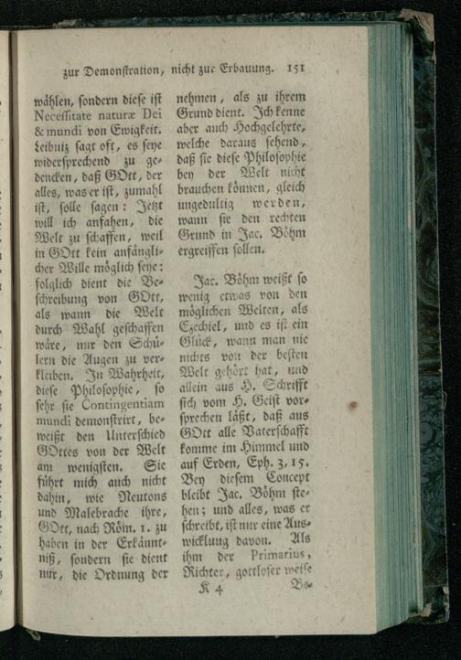Th. 2 (1765) Der Irrdischen und Himmlischen Philosophie, Zweyter Theil, Worinnen 1. Swedenborgs. 2. Malebranche. 3. Newtons. 4. Cluvers. 5. Wolfens. 6. Ploucquets. 7. Baglius. 8. Frickers Irrdische Philosophie mit Ezechiels himmlischer Philosophie verglichen wird