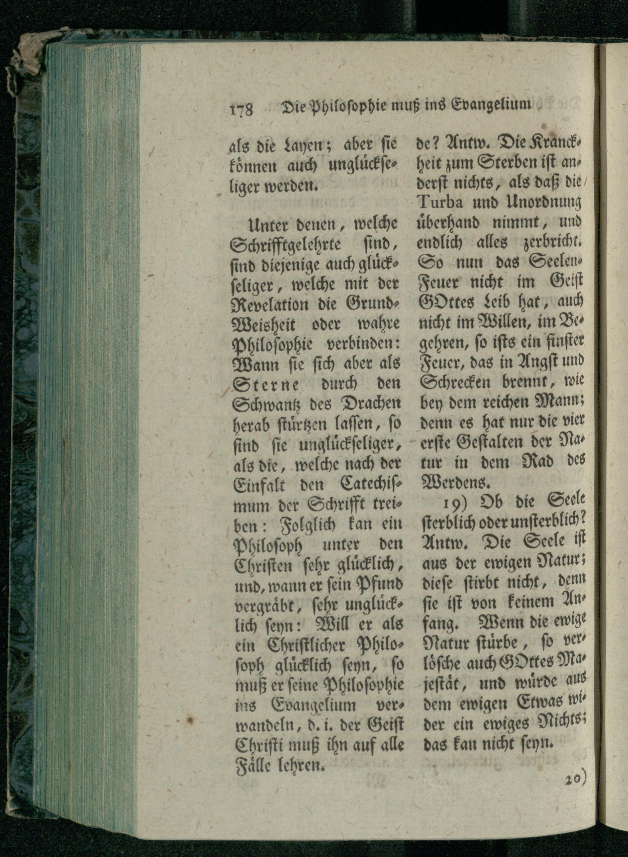 Th. 2 (1765) Der Irrdischen und Himmlischen Philosophie, Zweyter Theil, Worinnen 1. Swedenborgs. 2. Malebranche. 3. Newtons. 4. Cluvers. 5. Wolfens. 6. Ploucquets. 7. Baglius. 8. Frickers Irrdische Philosophie mit Ezechiels himmlischer Philosophie verglichen wird