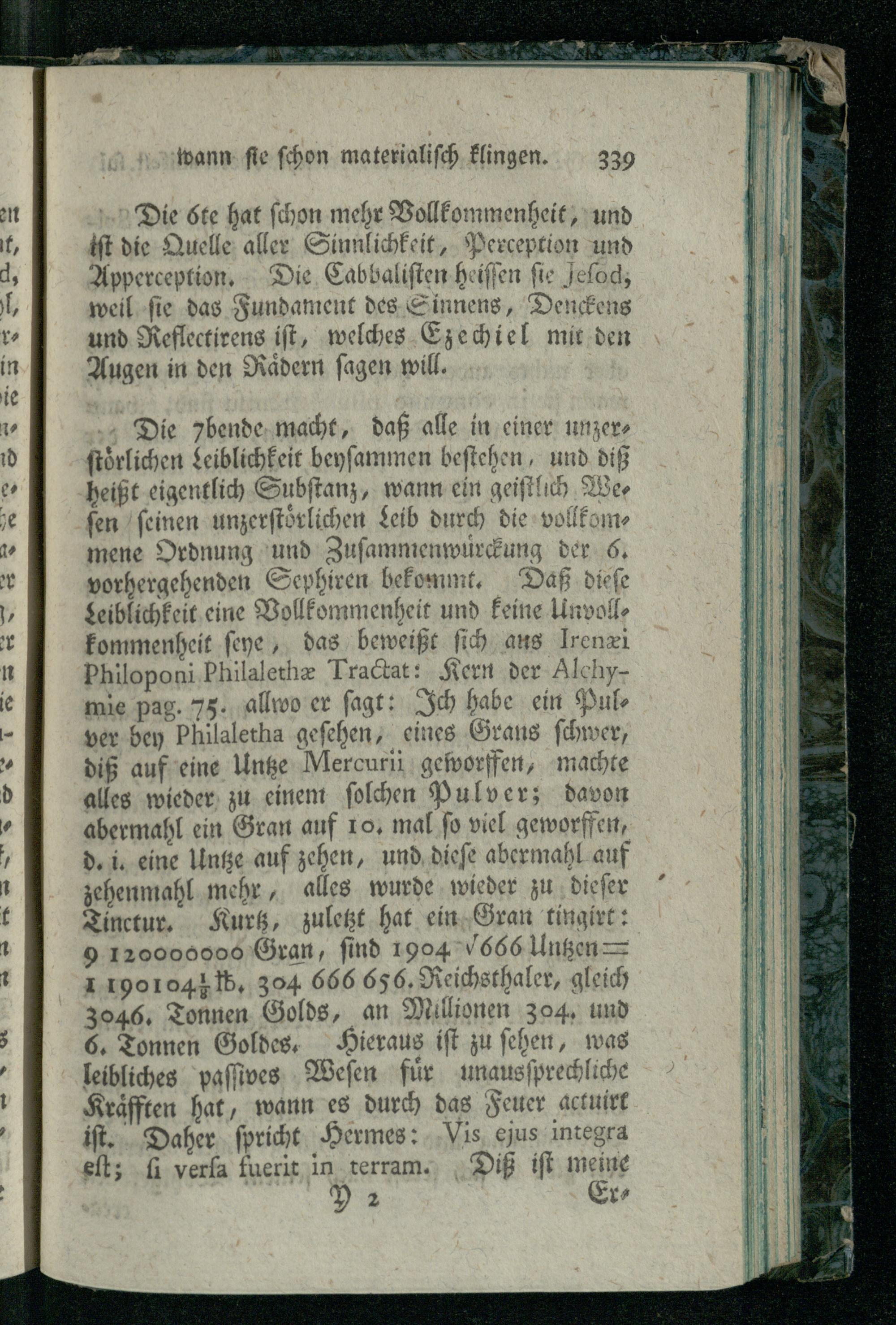 Th. 2 (1765) Der Irrdischen und Himmlischen Philosophie, Zweyter Theil, Worinnen 1. Swedenborgs. 2. Malebranche. 3. Newtons. 4. Cluvers. 5. Wolfens. 6. Ploucquets. 7. Baglius. 8. Frickers Irrdische Philosophie mit Ezechiels himmlischer Philosophie verglichen wird