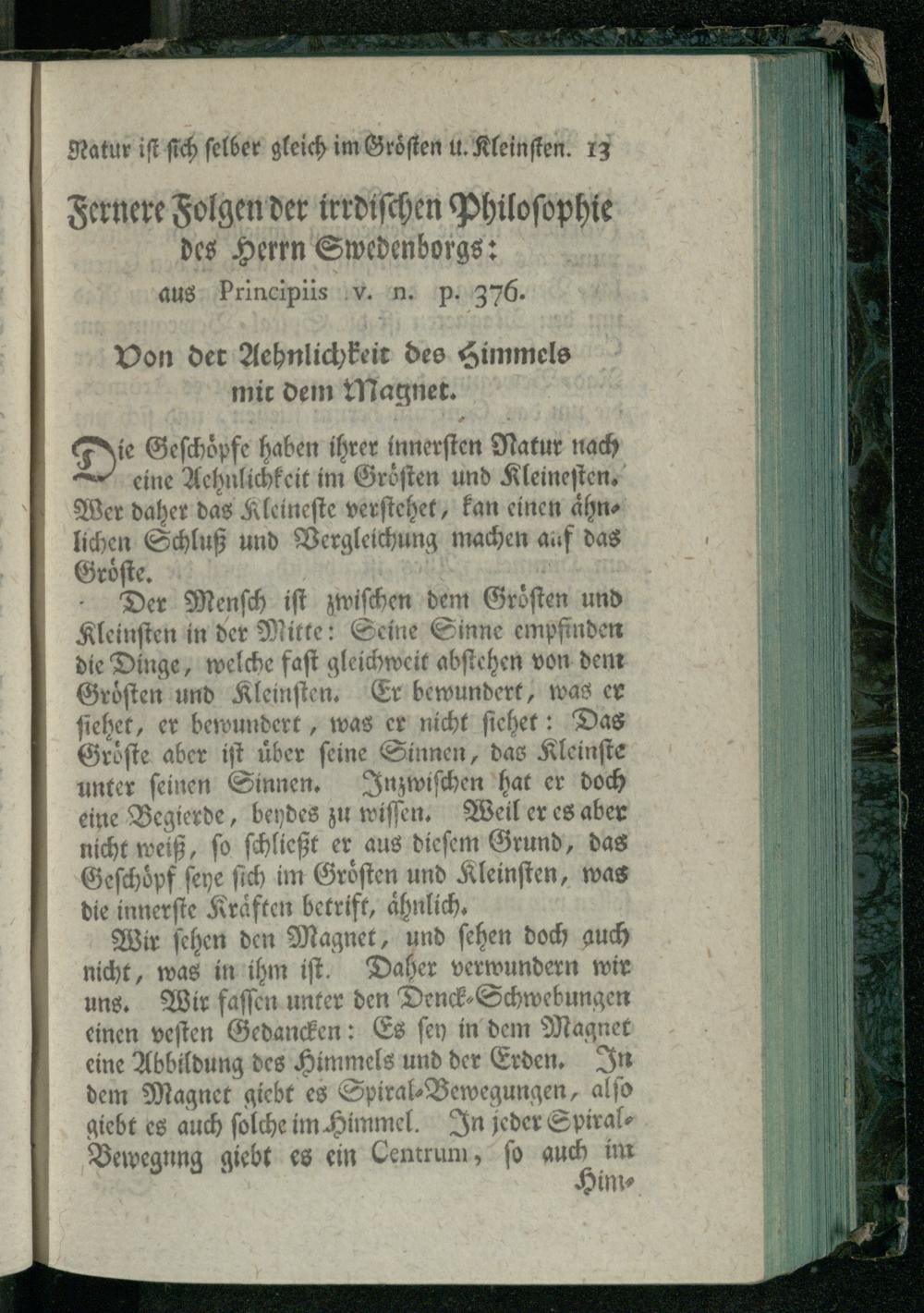 Th. 2 (1765) Der Irrdischen und Himmlischen Philosophie, Zweyter Theil, Worinnen 1. Swedenborgs. 2. Malebranche. 3. Newtons. 4. Cluvers. 5. Wolfens. 6. Ploucquets. 7. Baglius. 8. Frickers Irrdische Philosophie mit Ezechiels himmlischer Philosophie verglichen wird