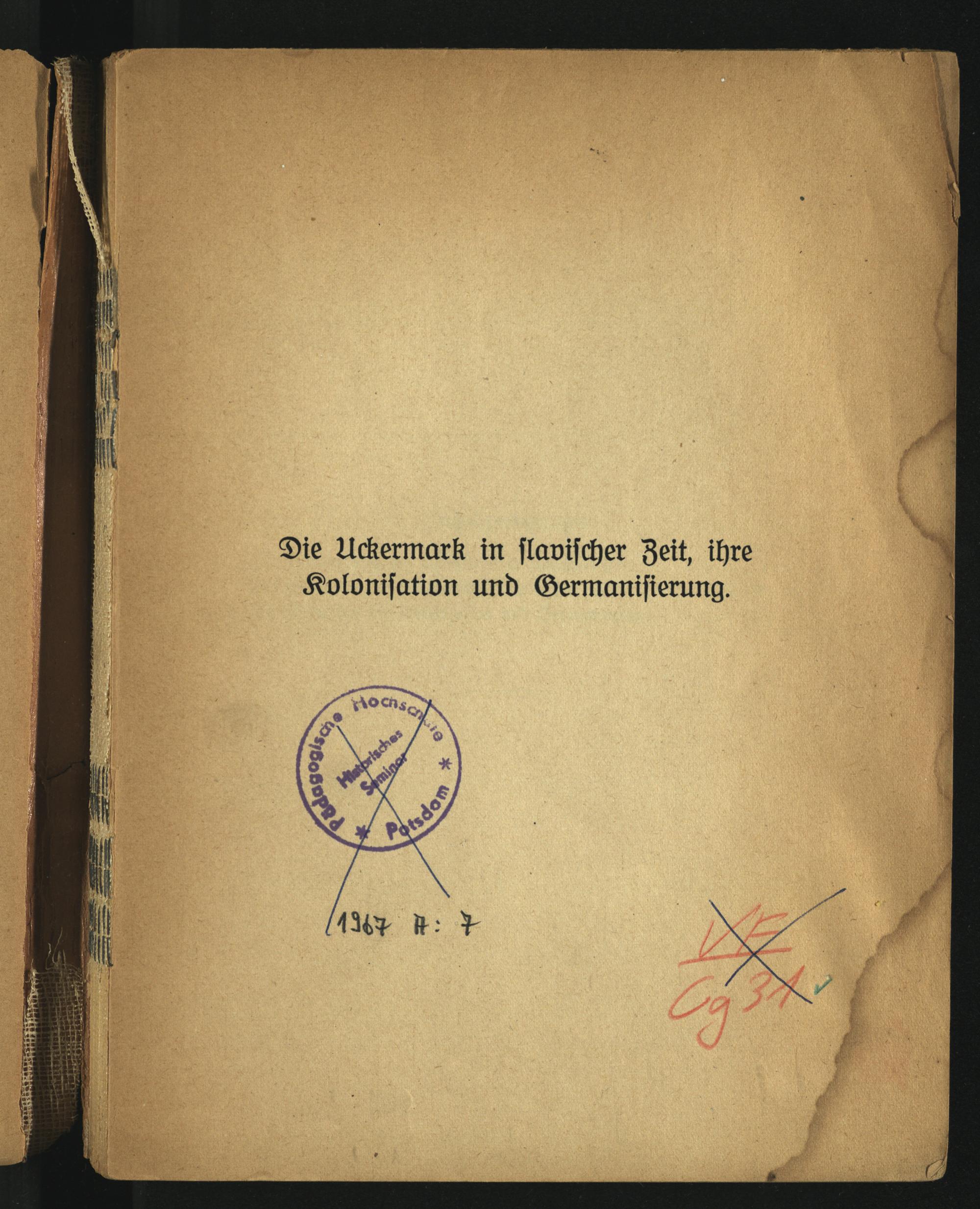 Die Uckermark in slavischer Zeit, ihre Kolonisation und Germanisierung / von Kurt Bruns-Wüstefeld