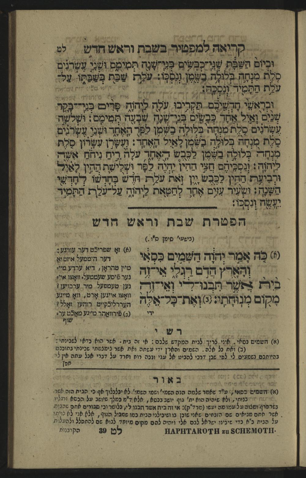 הפטרת שבת וראש חדש