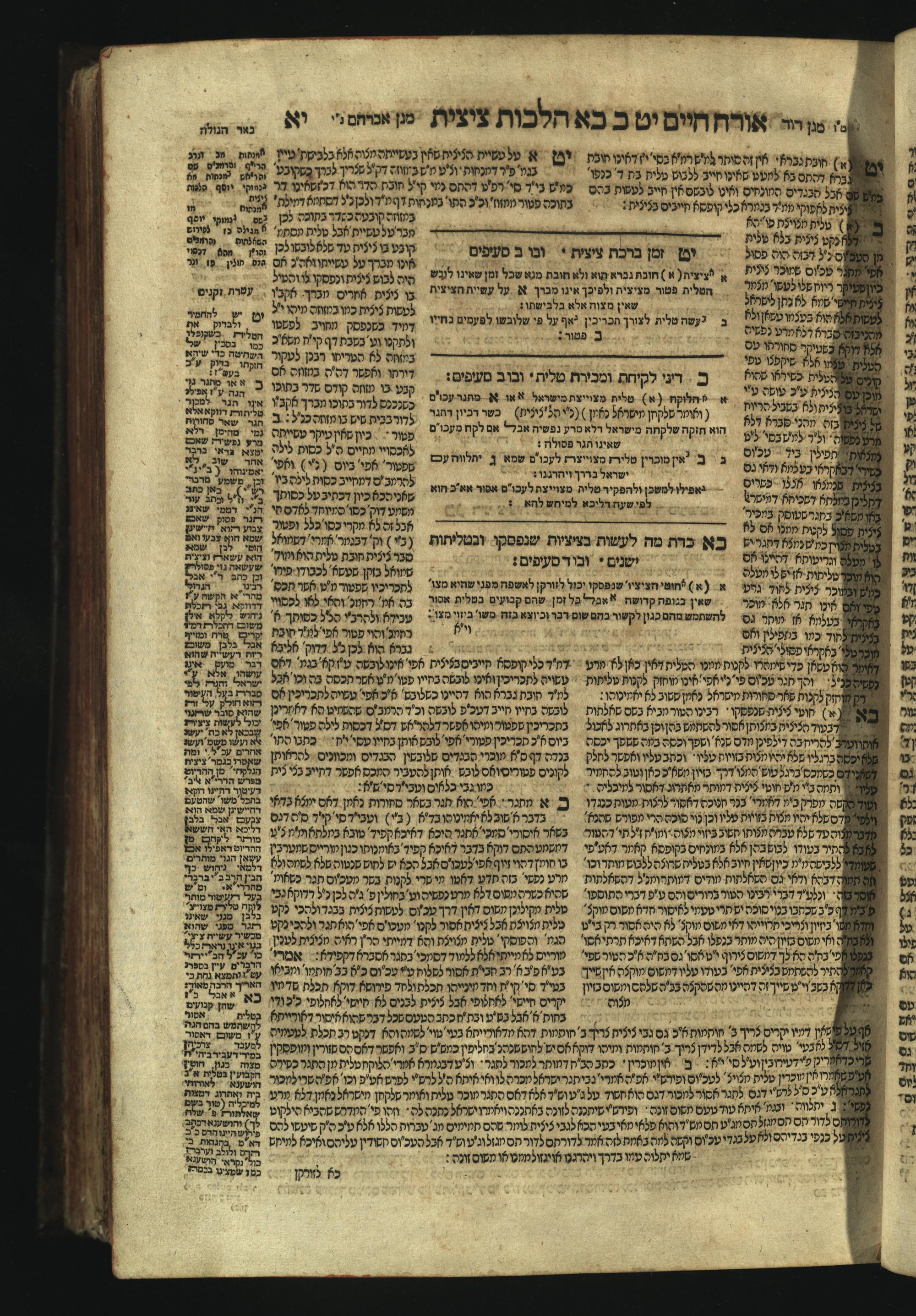 Sefer Magine erets : ... ʿal ha-Shulḥan ʿarukh ... Oraḥ ḥayim ... / ... ha-lo hemah ha-meʾorot ha-gedolim ... ha-shem ha-eḥad Magen Daṿid h.h. ha-gaʾon ... Daṿid ... baʿal ha-meḥaber sefer Ṭure zahav ṿe-shem ha-sheni Magen Avraham h.h. ... Avraham Segal Gumbiner z.l. dayan di-ḳ.ḳ. Ḳalish ... ṿe-ʿavar ʿalehem ʿAṭeret zeḳenim ... Mendel ... she-hirbits torato be-ḳ.ḳ. Ḳroṭoshin ben ha-katsin ... Zalman Fish Hoif mi-ḳ.ḳ. Ṿina: ... ha-ʿamadnu be-tsedo Beʾer ha-golah ... ṿe-hosafnu be-zeh ha-sefer ... Peri ḥadash ʿim ha-liḳuṭim ....ספר מגיני ארץ : ... על השלחן ערוך ... אורח חיים ... / ... הלא המה המאורות הגדולים ... השם האחד מגן דוד ... ה״ה הגאון ... דוד ... בעל המחבר ספר טורי זהב ושם השני מגן אברהם ה״ה ... אברהם סג״ל גומבינר ... דיין דק״ק קאליש ...ועבר עליהם עטרת זקנים ... מענדל ... שהרביץ תורתו בק״ק קראטשין בן הקצין ... זלמן פיש הויף מק״ק ווינא: העמדנו בצדו באר הגולה ... והוספנו בזה הספר ... פרי חדש עם הלקוטים ...