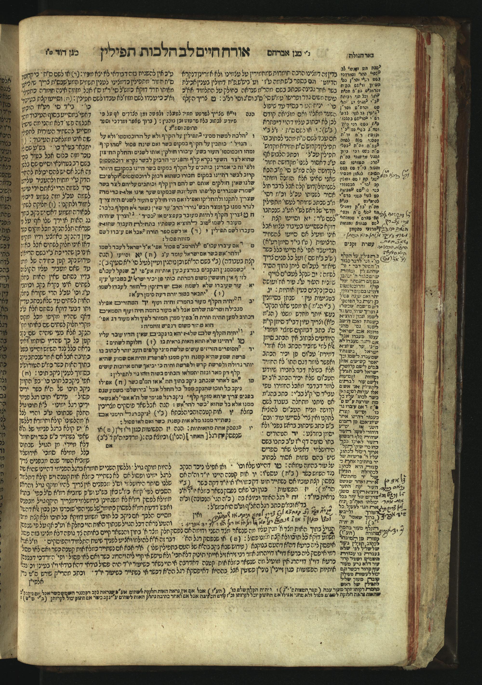 Sefer Magine erets : ... ʿal ha-Shulḥan ʿarukh ... Oraḥ ḥayim ... / ... ha-lo hemah ha-meʾorot ha-gedolim ... ha-shem ha-eḥad Magen Daṿid h.h. ha-gaʾon ... Daṿid ... baʿal ha-meḥaber sefer Ṭure zahav ṿe-shem ha-sheni Magen Avraham h.h. ... Avraham Segal Gumbiner z.l. dayan di-ḳ.ḳ. Ḳalish ... ṿe-ʿavar ʿalehem ʿAṭeret zeḳenim ... Mendel ... she-hirbits torato be-ḳ.ḳ. Ḳroṭoshin ben ha-katsin ... Zalman Fish Hoif mi-ḳ.ḳ. Ṿina: ... ha-ʿamadnu be-tsedo Beʾer ha-golah ... ṿe-hosafnu be-zeh ha-sefer ... Peri ḥadash ʿim ha-liḳuṭim ....ספר מגיני ארץ : ... על השלחן ערוך ... אורח חיים ... / ... הלא המה המאורות הגדולים ... השם האחד מגן דוד ... ה״ה הגאון ... דוד ... בעל המחבר ספר טורי זהב ושם השני מגן אברהם ה״ה ... אברהם סג״ל גומבינר ... דיין דק״ק קאליש ...ועבר עליהם עטרת זקנים ... מענדל ... שהרביץ תורתו בק״ק קראטשין בן הקצין ... זלמן פיש הויף מק״ק ווינא: העמדנו בצדו באר הגולה ... והוספנו בזה הספר ... פרי חדש עם הלקוטים ...