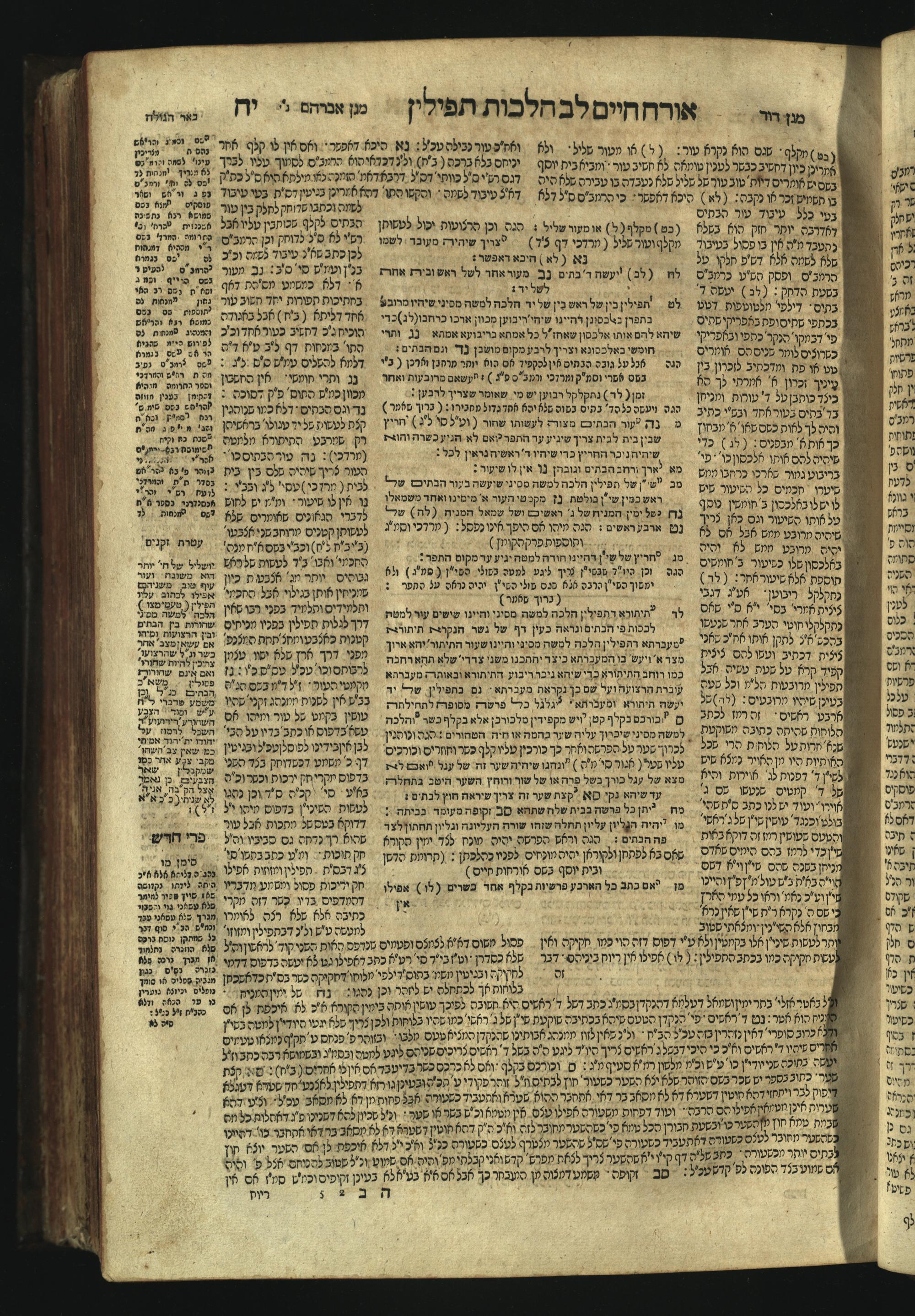 Sefer Magine erets : ... ʿal ha-Shulḥan ʿarukh ... Oraḥ ḥayim ... / ... ha-lo hemah ha-meʾorot ha-gedolim ... ha-shem ha-eḥad Magen Daṿid h.h. ha-gaʾon ... Daṿid ... baʿal ha-meḥaber sefer Ṭure zahav ṿe-shem ha-sheni Magen Avraham h.h. ... Avraham Segal Gumbiner z.l. dayan di-ḳ.ḳ. Ḳalish ... ṿe-ʿavar ʿalehem ʿAṭeret zeḳenim ... Mendel ... she-hirbits torato be-ḳ.ḳ. Ḳroṭoshin ben ha-katsin ... Zalman Fish Hoif mi-ḳ.ḳ. Ṿina: ... ha-ʿamadnu be-tsedo Beʾer ha-golah ... ṿe-hosafnu be-zeh ha-sefer ... Peri ḥadash ʿim ha-liḳuṭim ....ספר מגיני ארץ : ... על השלחן ערוך ... אורח חיים ... / ... הלא המה המאורות הגדולים ... השם האחד מגן דוד ... ה״ה הגאון ... דוד ... בעל המחבר ספר טורי זהב ושם השני מגן אברהם ה״ה ... אברהם סג״ל גומבינר ... דיין דק״ק קאליש ...ועבר עליהם עטרת זקנים ... מענדל ... שהרביץ תורתו בק״ק קראטשין בן הקצין ... זלמן פיש הויף מק״ק ווינא: העמדנו בצדו באר הגולה ... והוספנו בזה הספר ... פרי חדש עם הלקוטים ...