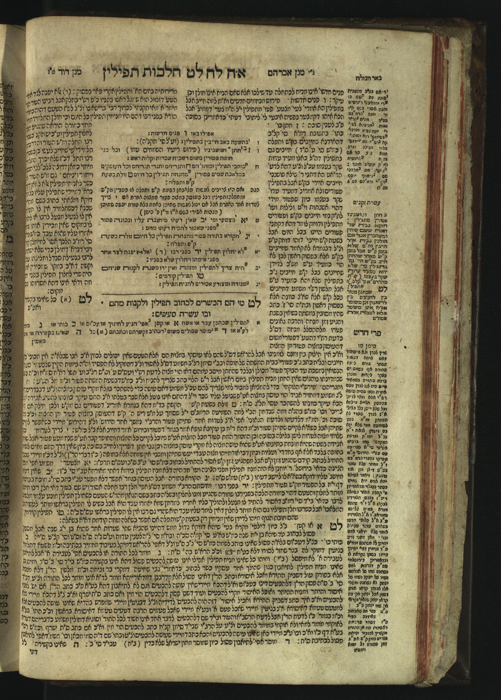 Sefer Magine erets : ... ʿal ha-Shulḥan ʿarukh ... Oraḥ ḥayim ... / ... ha-lo hemah ha-meʾorot ha-gedolim ... ha-shem ha-eḥad Magen Daṿid h.h. ha-gaʾon ... Daṿid ... baʿal ha-meḥaber sefer Ṭure zahav ṿe-shem ha-sheni Magen Avraham h.h. ... Avraham Segal Gumbiner z.l. dayan di-ḳ.ḳ. Ḳalish ... ṿe-ʿavar ʿalehem ʿAṭeret zeḳenim ... Mendel ... she-hirbits torato be-ḳ.ḳ. Ḳroṭoshin ben ha-katsin ... Zalman Fish Hoif mi-ḳ.ḳ. Ṿina: ... ha-ʿamadnu be-tsedo Beʾer ha-golah ... ṿe-hosafnu be-zeh ha-sefer ... Peri ḥadash ʿim ha-liḳuṭim ....ספר מגיני ארץ : ... על השלחן ערוך ... אורח חיים ... / ... הלא המה המאורות הגדולים ... השם האחד מגן דוד ... ה״ה הגאון ... דוד ... בעל המחבר ספר טורי זהב ושם השני מגן אברהם ה״ה ... אברהם סג״ל גומבינר ... דיין דק״ק קאליש ...ועבר עליהם עטרת זקנים ... מענדל ... שהרביץ תורתו בק״ק קראטשין בן הקצין ... זלמן פיש הויף מק״ק ווינא: העמדנו בצדו באר הגולה ... והוספנו בזה הספר ... פרי חדש עם הלקוטים ...