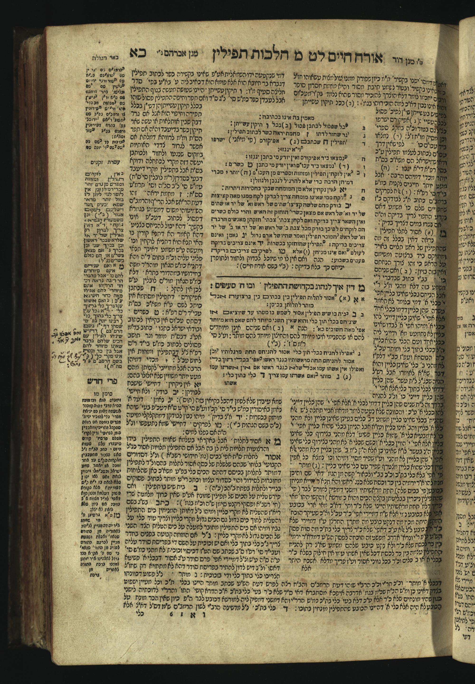 Sefer Magine erets : ... ʿal ha-Shulḥan ʿarukh ... Oraḥ ḥayim ... / ... ha-lo hemah ha-meʾorot ha-gedolim ... ha-shem ha-eḥad Magen Daṿid h.h. ha-gaʾon ... Daṿid ... baʿal ha-meḥaber sefer Ṭure zahav ṿe-shem ha-sheni Magen Avraham h.h. ... Avraham Segal Gumbiner z.l. dayan di-ḳ.ḳ. Ḳalish ... ṿe-ʿavar ʿalehem ʿAṭeret zeḳenim ... Mendel ... she-hirbits torato be-ḳ.ḳ. Ḳroṭoshin ben ha-katsin ... Zalman Fish Hoif mi-ḳ.ḳ. Ṿina: ... ha-ʿamadnu be-tsedo Beʾer ha-golah ... ṿe-hosafnu be-zeh ha-sefer ... Peri ḥadash ʿim ha-liḳuṭim ....ספר מגיני ארץ : ... על השלחן ערוך ... אורח חיים ... / ... הלא המה המאורות הגדולים ... השם האחד מגן דוד ... ה״ה הגאון ... דוד ... בעל המחבר ספר טורי זהב ושם השני מגן אברהם ה״ה ... אברהם סג״ל גומבינר ... דיין דק״ק קאליש ...ועבר עליהם עטרת זקנים ... מענדל ... שהרביץ תורתו בק״ק קראטשין בן הקצין ... זלמן פיש הויף מק״ק ווינא: העמדנו בצדו באר הגולה ... והוספנו בזה הספר ... פרי חדש עם הלקוטים ...