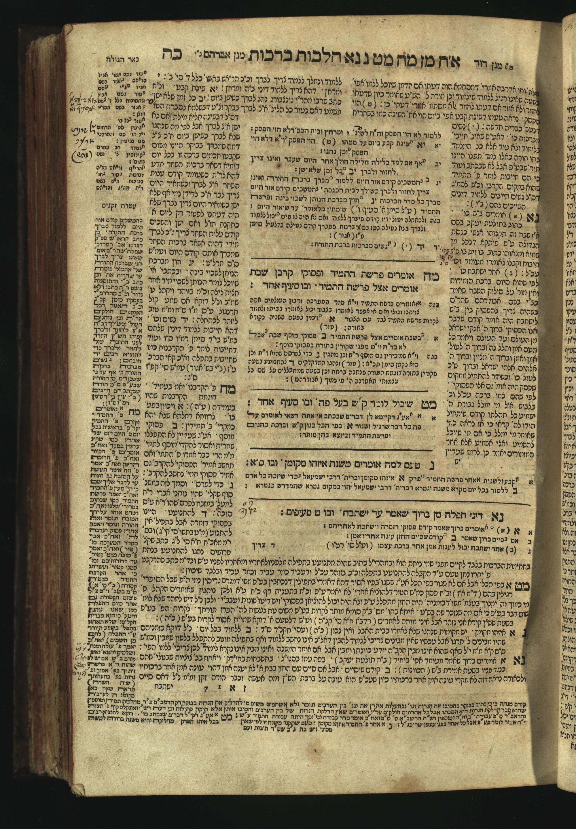 Sefer Magine erets : ... ʿal ha-Shulḥan ʿarukh ... Oraḥ ḥayim ... / ... ha-lo hemah ha-meʾorot ha-gedolim ... ha-shem ha-eḥad Magen Daṿid h.h. ha-gaʾon ... Daṿid ... baʿal ha-meḥaber sefer Ṭure zahav ṿe-shem ha-sheni Magen Avraham h.h. ... Avraham Segal Gumbiner z.l. dayan di-ḳ.ḳ. Ḳalish ... ṿe-ʿavar ʿalehem ʿAṭeret zeḳenim ... Mendel ... she-hirbits torato be-ḳ.ḳ. Ḳroṭoshin ben ha-katsin ... Zalman Fish Hoif mi-ḳ.ḳ. Ṿina: ... ha-ʿamadnu be-tsedo Beʾer ha-golah ... ṿe-hosafnu be-zeh ha-sefer ... Peri ḥadash ʿim ha-liḳuṭim ....ספר מגיני ארץ : ... על השלחן ערוך ... אורח חיים ... / ... הלא המה המאורות הגדולים ... השם האחד מגן דוד ... ה״ה הגאון ... דוד ... בעל המחבר ספר טורי זהב ושם השני מגן אברהם ה״ה ... אברהם סג״ל גומבינר ... דיין דק״ק קאליש ...ועבר עליהם עטרת זקנים ... מענדל ... שהרביץ תורתו בק״ק קראטשין בן הקצין ... זלמן פיש הויף מק״ק ווינא: העמדנו בצדו באר הגולה ... והוספנו בזה הספר ... פרי חדש עם הלקוטים ...