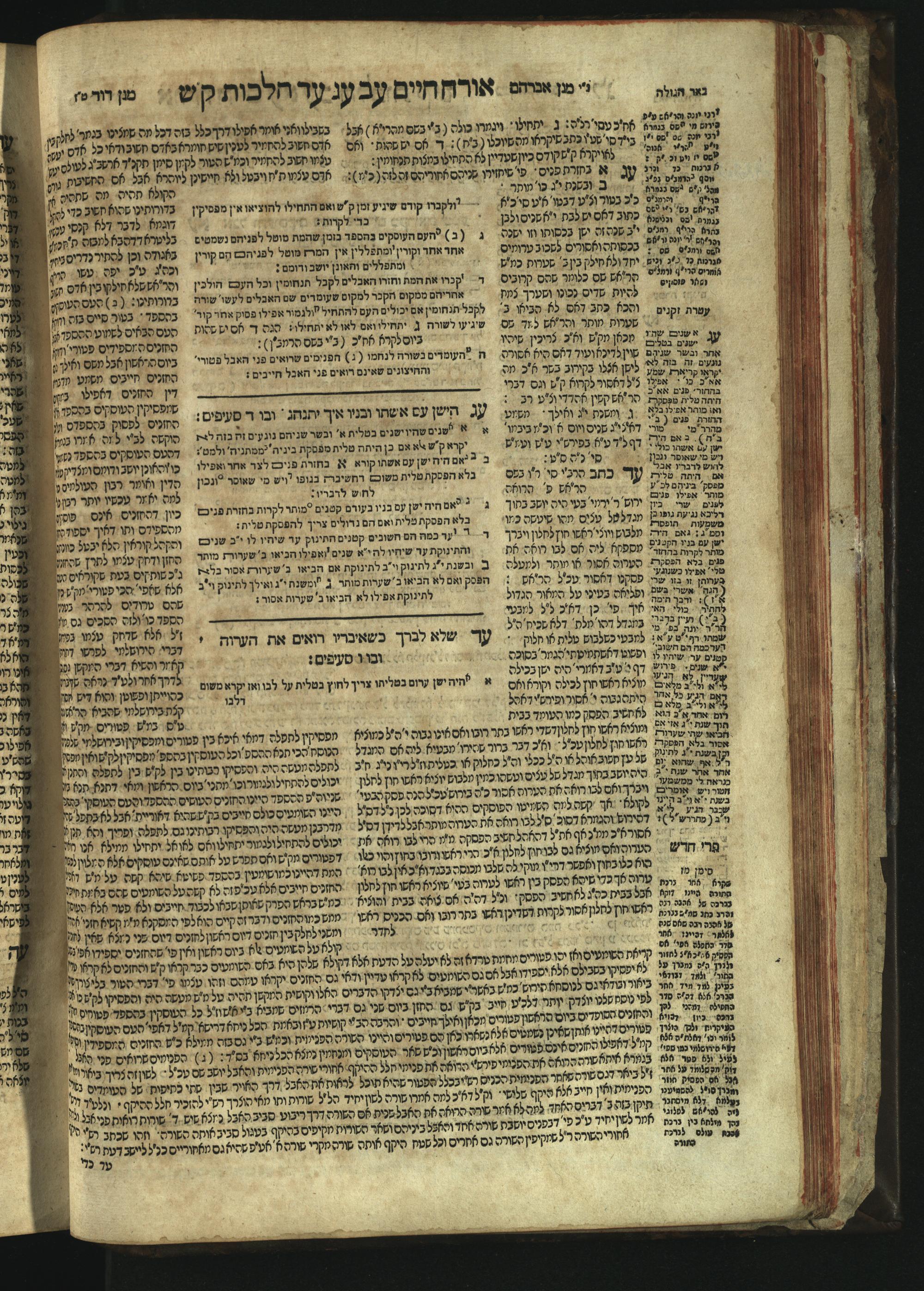 Sefer Magine erets : ... ʿal ha-Shulḥan ʿarukh ... Oraḥ ḥayim ... / ... ha-lo hemah ha-meʾorot ha-gedolim ... ha-shem ha-eḥad Magen Daṿid h.h. ha-gaʾon ... Daṿid ... baʿal ha-meḥaber sefer Ṭure zahav ṿe-shem ha-sheni Magen Avraham h.h. ... Avraham Segal Gumbiner z.l. dayan di-ḳ.ḳ. Ḳalish ... ṿe-ʿavar ʿalehem ʿAṭeret zeḳenim ... Mendel ... she-hirbits torato be-ḳ.ḳ. Ḳroṭoshin ben ha-katsin ... Zalman Fish Hoif mi-ḳ.ḳ. Ṿina: ... ha-ʿamadnu be-tsedo Beʾer ha-golah ... ṿe-hosafnu be-zeh ha-sefer ... Peri ḥadash ʿim ha-liḳuṭim ....ספר מגיני ארץ : ... על השלחן ערוך ... אורח חיים ... / ... הלא המה המאורות הגדולים ... השם האחד מגן דוד ... ה״ה הגאון ... דוד ... בעל המחבר ספר טורי זהב ושם השני מגן אברהם ה״ה ... אברהם סג״ל גומבינר ... דיין דק״ק קאליש ...ועבר עליהם עטרת זקנים ... מענדל ... שהרביץ תורתו בק״ק קראטשין בן הקצין ... זלמן פיש הויף מק״ק ווינא: העמדנו בצדו באר הגולה ... והוספנו בזה הספר ... פרי חדש עם הלקוטים ...