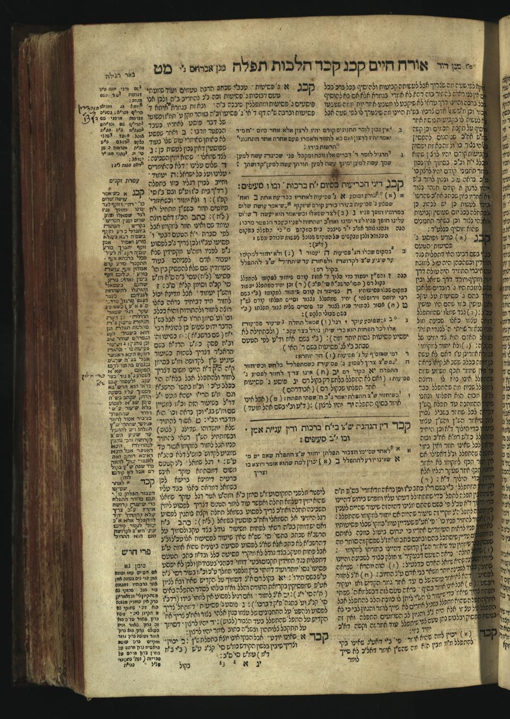 Sefer Magine erets : ... ʿal ha-Shulḥan ʿarukh ... Oraḥ ḥayim ... / ... ha-lo hemah ha-meʾorot ha-gedolim ... ha-shem ha-eḥad Magen Daṿid h.h. ha-gaʾon ... Daṿid ... baʿal ha-meḥaber sefer Ṭure zahav ṿe-shem ha-sheni Magen Avraham h.h. ... Avraham Segal Gumbiner z.l. dayan di-ḳ.ḳ. Ḳalish ... ṿe-ʿavar ʿalehem ʿAṭeret zeḳenim ... Mendel ... she-hirbits torato be-ḳ.ḳ. Ḳroṭoshin ben ha-katsin ... Zalman Fish Hoif mi-ḳ.ḳ. Ṿina: ... ha-ʿamadnu be-tsedo Beʾer ha-golah ... ṿe-hosafnu be-zeh ha-sefer ... Peri ḥadash ʿim ha-liḳuṭim ....ספר מגיני ארץ : ... על השלחן ערוך ... אורח חיים ... / ... הלא המה המאורות הגדולים ... השם האחד מגן דוד ... ה״ה הגאון ... דוד ... בעל המחבר ספר טורי זהב ושם השני מגן אברהם ה״ה ... אברהם סג״ל גומבינר ... דיין דק״ק קאליש ...ועבר עליהם עטרת זקנים ... מענדל ... שהרביץ תורתו בק״ק קראטשין בן הקצין ... זלמן פיש הויף מק״ק ווינא: העמדנו בצדו באר הגולה ... והוספנו בזה הספר ... פרי חדש עם הלקוטים ...
