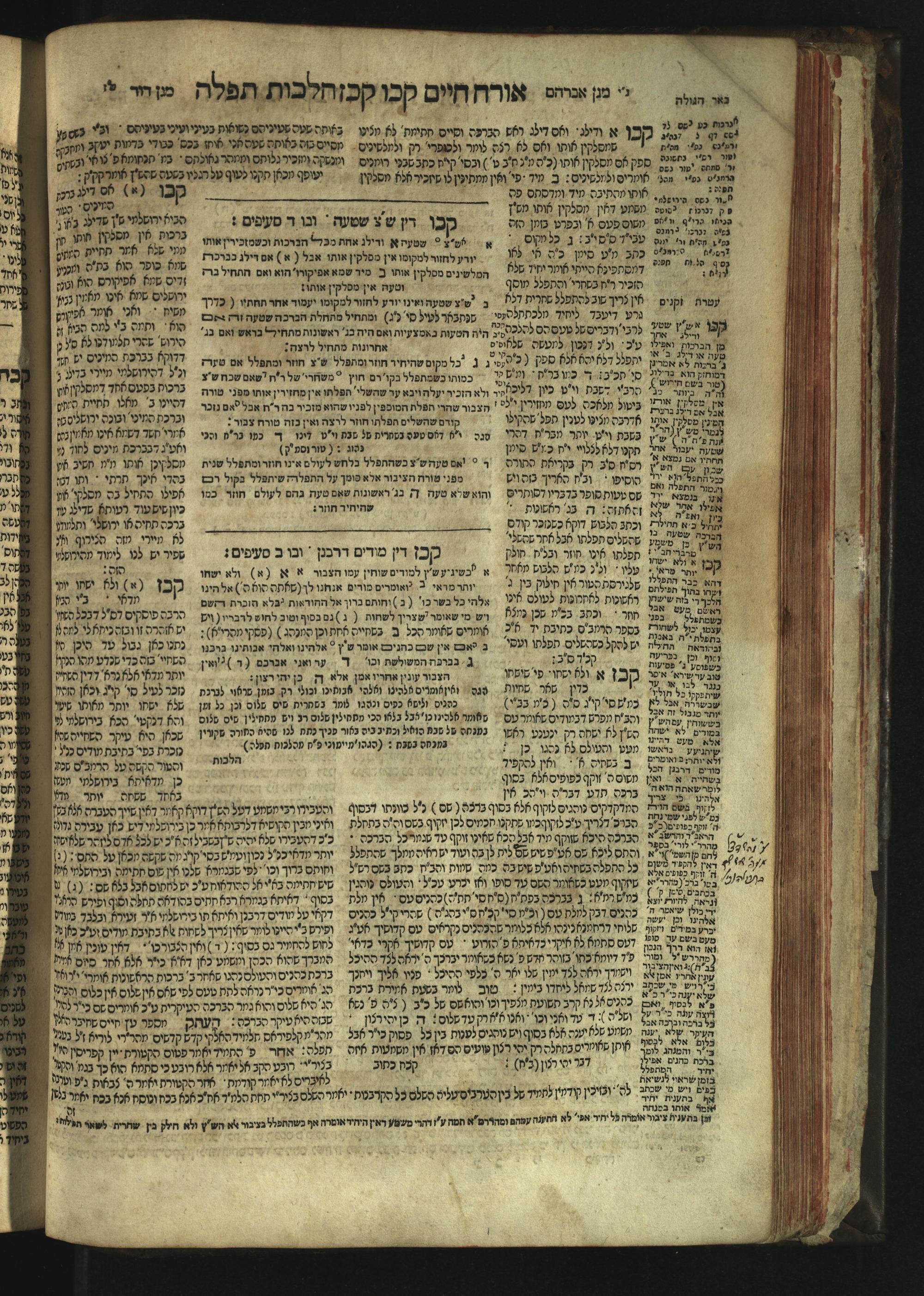 Sefer Magine erets : ... ʿal ha-Shulḥan ʿarukh ... Oraḥ ḥayim ... / ... ha-lo hemah ha-meʾorot ha-gedolim ... ha-shem ha-eḥad Magen Daṿid h.h. ha-gaʾon ... Daṿid ... baʿal ha-meḥaber sefer Ṭure zahav ṿe-shem ha-sheni Magen Avraham h.h. ... Avraham Segal Gumbiner z.l. dayan di-ḳ.ḳ. Ḳalish ... ṿe-ʿavar ʿalehem ʿAṭeret zeḳenim ... Mendel ... she-hirbits torato be-ḳ.ḳ. Ḳroṭoshin ben ha-katsin ... Zalman Fish Hoif mi-ḳ.ḳ. Ṿina: ... ha-ʿamadnu be-tsedo Beʾer ha-golah ... ṿe-hosafnu be-zeh ha-sefer ... Peri ḥadash ʿim ha-liḳuṭim ....ספר מגיני ארץ : ... על השלחן ערוך ... אורח חיים ... / ... הלא המה המאורות הגדולים ... השם האחד מגן דוד ... ה״ה הגאון ... דוד ... בעל המחבר ספר טורי זהב ושם השני מגן אברהם ה״ה ... אברהם סג״ל גומבינר ... דיין דק״ק קאליש ...ועבר עליהם עטרת זקנים ... מענדל ... שהרביץ תורתו בק״ק קראטשין בן הקצין ... זלמן פיש הויף מק״ק ווינא: העמדנו בצדו באר הגולה ... והוספנו בזה הספר ... פרי חדש עם הלקוטים ...