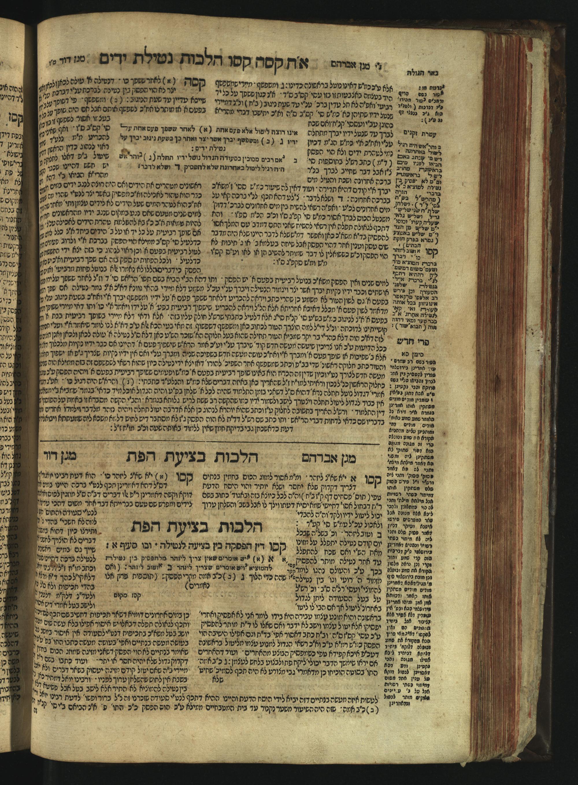 Sefer Magine erets : ... ʿal ha-Shulḥan ʿarukh ... Oraḥ ḥayim ... / ... ha-lo hemah ha-meʾorot ha-gedolim ... ha-shem ha-eḥad Magen Daṿid h.h. ha-gaʾon ... Daṿid ... baʿal ha-meḥaber sefer Ṭure zahav ṿe-shem ha-sheni Magen Avraham h.h. ... Avraham Segal Gumbiner z.l. dayan di-ḳ.ḳ. Ḳalish ... ṿe-ʿavar ʿalehem ʿAṭeret zeḳenim ... Mendel ... she-hirbits torato be-ḳ.ḳ. Ḳroṭoshin ben ha-katsin ... Zalman Fish Hoif mi-ḳ.ḳ. Ṿina: ... ha-ʿamadnu be-tsedo Beʾer ha-golah ... ṿe-hosafnu be-zeh ha-sefer ... Peri ḥadash ʿim ha-liḳuṭim ....ספר מגיני ארץ : ... על השלחן ערוך ... אורח חיים ... / ... הלא המה המאורות הגדולים ... השם האחד מגן דוד ... ה״ה הגאון ... דוד ... בעל המחבר ספר טורי זהב ושם השני מגן אברהם ה״ה ... אברהם סג״ל גומבינר ... דיין דק״ק קאליש ...ועבר עליהם עטרת זקנים ... מענדל ... שהרביץ תורתו בק״ק קראטשין בן הקצין ... זלמן פיש הויף מק״ק ווינא: העמדנו בצדו באר הגולה ... והוספנו בזה הספר ... פרי חדש עם הלקוטים ...