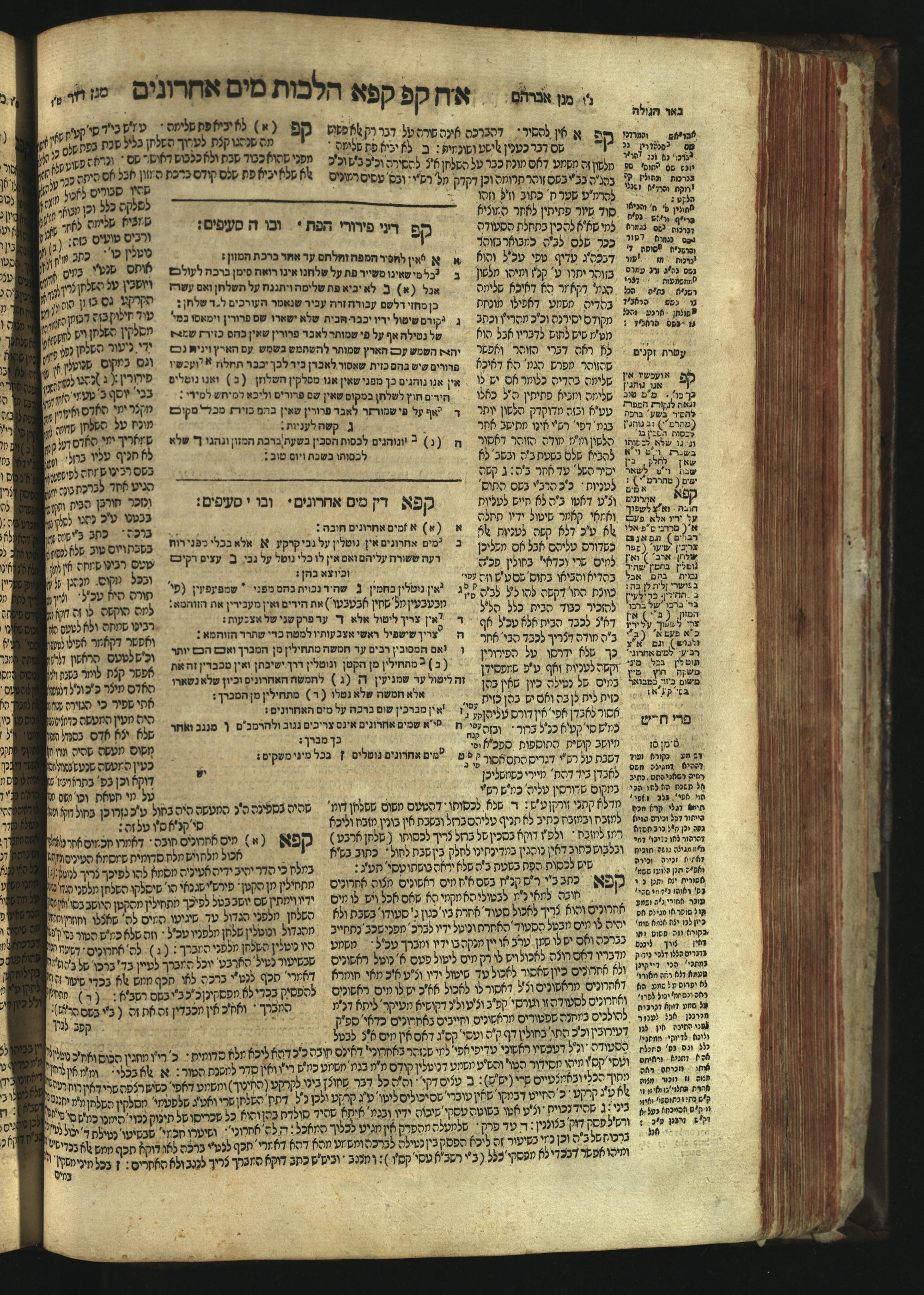 Sefer Magine erets : ... ʿal ha-Shulḥan ʿarukh ... Oraḥ ḥayim ... / ... ha-lo hemah ha-meʾorot ha-gedolim ... ha-shem ha-eḥad Magen Daṿid h.h. ha-gaʾon ... Daṿid ... baʿal ha-meḥaber sefer Ṭure zahav ṿe-shem ha-sheni Magen Avraham h.h. ... Avraham Segal Gumbiner z.l. dayan di-ḳ.ḳ. Ḳalish ... ṿe-ʿavar ʿalehem ʿAṭeret zeḳenim ... Mendel ... she-hirbits torato be-ḳ.ḳ. Ḳroṭoshin ben ha-katsin ... Zalman Fish Hoif mi-ḳ.ḳ. Ṿina: ... ha-ʿamadnu be-tsedo Beʾer ha-golah ... ṿe-hosafnu be-zeh ha-sefer ... Peri ḥadash ʿim ha-liḳuṭim ....ספר מגיני ארץ : ... על השלחן ערוך ... אורח חיים ... / ... הלא המה המאורות הגדולים ... השם האחד מגן דוד ... ה״ה הגאון ... דוד ... בעל המחבר ספר טורי זהב ושם השני מגן אברהם ה״ה ... אברהם סג״ל גומבינר ... דיין דק״ק קאליש ...ועבר עליהם עטרת זקנים ... מענדל ... שהרביץ תורתו בק״ק קראטשין בן הקצין ... זלמן פיש הויף מק״ק ווינא: העמדנו בצדו באר הגולה ... והוספנו בזה הספר ... פרי חדש עם הלקוטים ...
