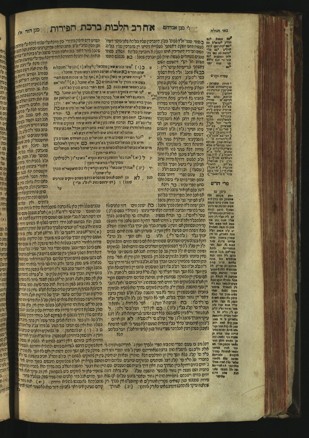 Sefer Magine erets : ... ʿal ha-Shulḥan ʿarukh ... Oraḥ ḥayim ... / ... ha-lo hemah ha-meʾorot ha-gedolim ... ha-shem ha-eḥad Magen Daṿid h.h. ha-gaʾon ... Daṿid ... baʿal ha-meḥaber sefer Ṭure zahav ṿe-shem ha-sheni Magen Avraham h.h. ... Avraham Segal Gumbiner z.l. dayan di-ḳ.ḳ. Ḳalish ... ṿe-ʿavar ʿalehem ʿAṭeret zeḳenim ... Mendel ... she-hirbits torato be-ḳ.ḳ. Ḳroṭoshin ben ha-katsin ... Zalman Fish Hoif mi-ḳ.ḳ. Ṿina: ... ha-ʿamadnu be-tsedo Beʾer ha-golah ... ṿe-hosafnu be-zeh ha-sefer ... Peri ḥadash ʿim ha-liḳuṭim ....ספר מגיני ארץ : ... על השלחן ערוך ... אורח חיים ... / ... הלא המה המאורות הגדולים ... השם האחד מגן דוד ... ה״ה הגאון ... דוד ... בעל המחבר ספר טורי זהב ושם השני מגן אברהם ה״ה ... אברהם סג״ל גומבינר ... דיין דק״ק קאליש ...ועבר עליהם עטרת זקנים ... מענדל ... שהרביץ תורתו בק״ק קראטשין בן הקצין ... זלמן פיש הויף מק״ק ווינא: העמדנו בצדו באר הגולה ... והוספנו בזה הספר ... פרי חדש עם הלקוטים ...