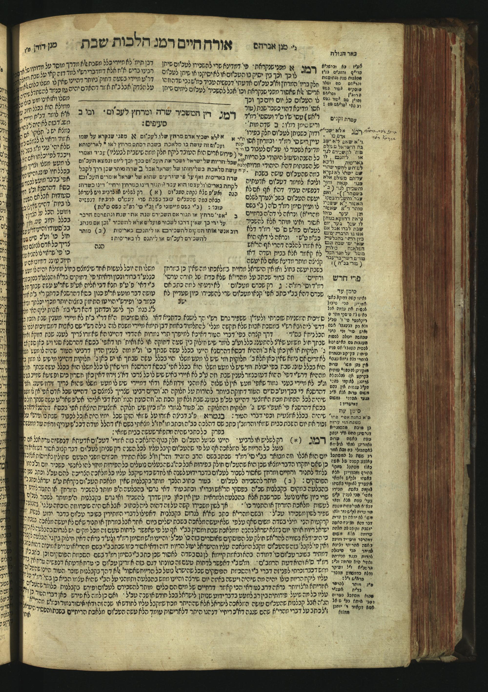 Sefer Magine erets : ... ʿal ha-Shulḥan ʿarukh ... Oraḥ ḥayim ... / ... ha-lo hemah ha-meʾorot ha-gedolim ... ha-shem ha-eḥad Magen Daṿid h.h. ha-gaʾon ... Daṿid ... baʿal ha-meḥaber sefer Ṭure zahav ṿe-shem ha-sheni Magen Avraham h.h. ... Avraham Segal Gumbiner z.l. dayan di-ḳ.ḳ. Ḳalish ... ṿe-ʿavar ʿalehem ʿAṭeret zeḳenim ... Mendel ... she-hirbits torato be-ḳ.ḳ. Ḳroṭoshin ben ha-katsin ... Zalman Fish Hoif mi-ḳ.ḳ. Ṿina: ... ha-ʿamadnu be-tsedo Beʾer ha-golah ... ṿe-hosafnu be-zeh ha-sefer ... Peri ḥadash ʿim ha-liḳuṭim ....ספר מגיני ארץ : ... על השלחן ערוך ... אורח חיים ... / ... הלא המה המאורות הגדולים ... השם האחד מגן דוד ... ה״ה הגאון ... דוד ... בעל המחבר ספר טורי זהב ושם השני מגן אברהם ה״ה ... אברהם סג״ל גומבינר ... דיין דק״ק קאליש ...ועבר עליהם עטרת זקנים ... מענדל ... שהרביץ תורתו בק״ק קראטשין בן הקצין ... זלמן פיש הויף מק״ק ווינא: העמדנו בצדו באר הגולה ... והוספנו בזה הספר ... פרי חדש עם הלקוטים ...