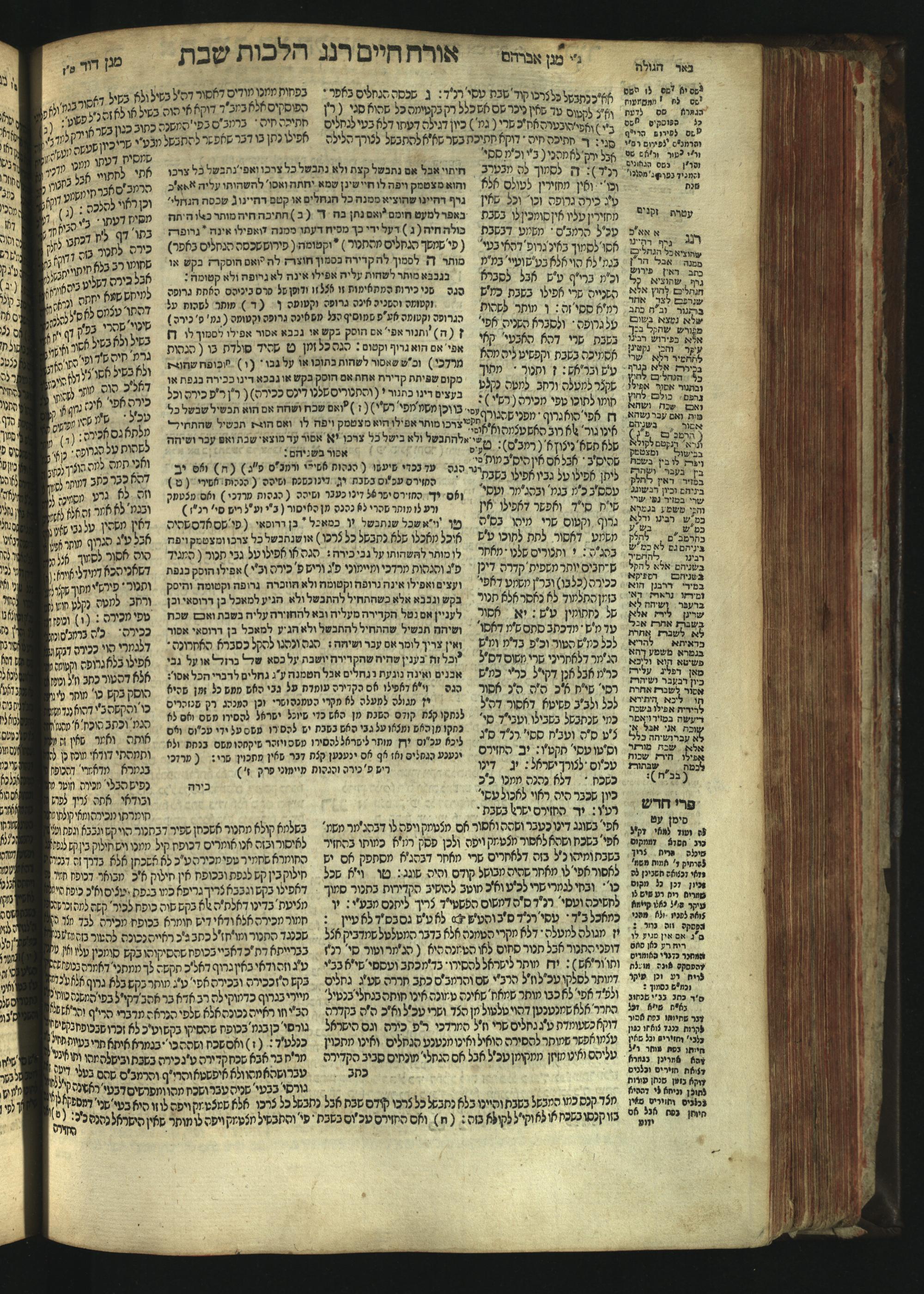 Sefer Magine erets : ... ʿal ha-Shulḥan ʿarukh ... Oraḥ ḥayim ... / ... ha-lo hemah ha-meʾorot ha-gedolim ... ha-shem ha-eḥad Magen Daṿid h.h. ha-gaʾon ... Daṿid ... baʿal ha-meḥaber sefer Ṭure zahav ṿe-shem ha-sheni Magen Avraham h.h. ... Avraham Segal Gumbiner z.l. dayan di-ḳ.ḳ. Ḳalish ... ṿe-ʿavar ʿalehem ʿAṭeret zeḳenim ... Mendel ... she-hirbits torato be-ḳ.ḳ. Ḳroṭoshin ben ha-katsin ... Zalman Fish Hoif mi-ḳ.ḳ. Ṿina: ... ha-ʿamadnu be-tsedo Beʾer ha-golah ... ṿe-hosafnu be-zeh ha-sefer ... Peri ḥadash ʿim ha-liḳuṭim ....ספר מגיני ארץ : ... על השלחן ערוך ... אורח חיים ... / ... הלא המה המאורות הגדולים ... השם האחד מגן דוד ... ה״ה הגאון ... דוד ... בעל המחבר ספר טורי זהב ושם השני מגן אברהם ה״ה ... אברהם סג״ל גומבינר ... דיין דק״ק קאליש ...ועבר עליהם עטרת זקנים ... מענדל ... שהרביץ תורתו בק״ק קראטשין בן הקצין ... זלמן פיש הויף מק״ק ווינא: העמדנו בצדו באר הגולה ... והוספנו בזה הספר ... פרי חדש עם הלקוטים ...