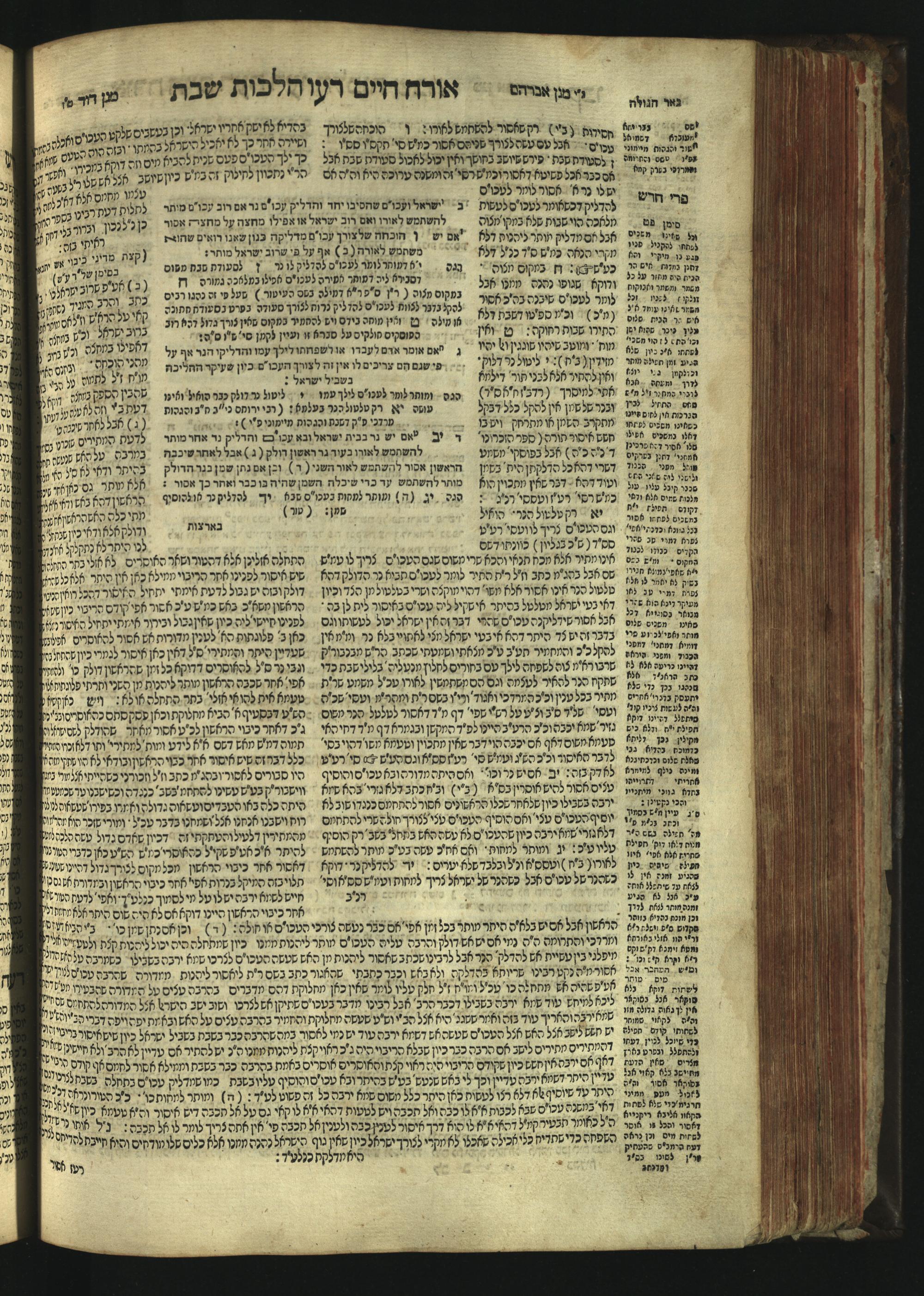 Sefer Magine erets : ... ʿal ha-Shulḥan ʿarukh ... Oraḥ ḥayim ... / ... ha-lo hemah ha-meʾorot ha-gedolim ... ha-shem ha-eḥad Magen Daṿid h.h. ha-gaʾon ... Daṿid ... baʿal ha-meḥaber sefer Ṭure zahav ṿe-shem ha-sheni Magen Avraham h.h. ... Avraham Segal Gumbiner z.l. dayan di-ḳ.ḳ. Ḳalish ... ṿe-ʿavar ʿalehem ʿAṭeret zeḳenim ... Mendel ... she-hirbits torato be-ḳ.ḳ. Ḳroṭoshin ben ha-katsin ... Zalman Fish Hoif mi-ḳ.ḳ. Ṿina: ... ha-ʿamadnu be-tsedo Beʾer ha-golah ... ṿe-hosafnu be-zeh ha-sefer ... Peri ḥadash ʿim ha-liḳuṭim ....ספר מגיני ארץ : ... על השלחן ערוך ... אורח חיים ... / ... הלא המה המאורות הגדולים ... השם האחד מגן דוד ... ה״ה הגאון ... דוד ... בעל המחבר ספר טורי זהב ושם השני מגן אברהם ה״ה ... אברהם סג״ל גומבינר ... דיין דק״ק קאליש ...ועבר עליהם עטרת זקנים ... מענדל ... שהרביץ תורתו בק״ק קראטשין בן הקצין ... זלמן פיש הויף מק״ק ווינא: העמדנו בצדו באר הגולה ... והוספנו בזה הספר ... פרי חדש עם הלקוטים ...