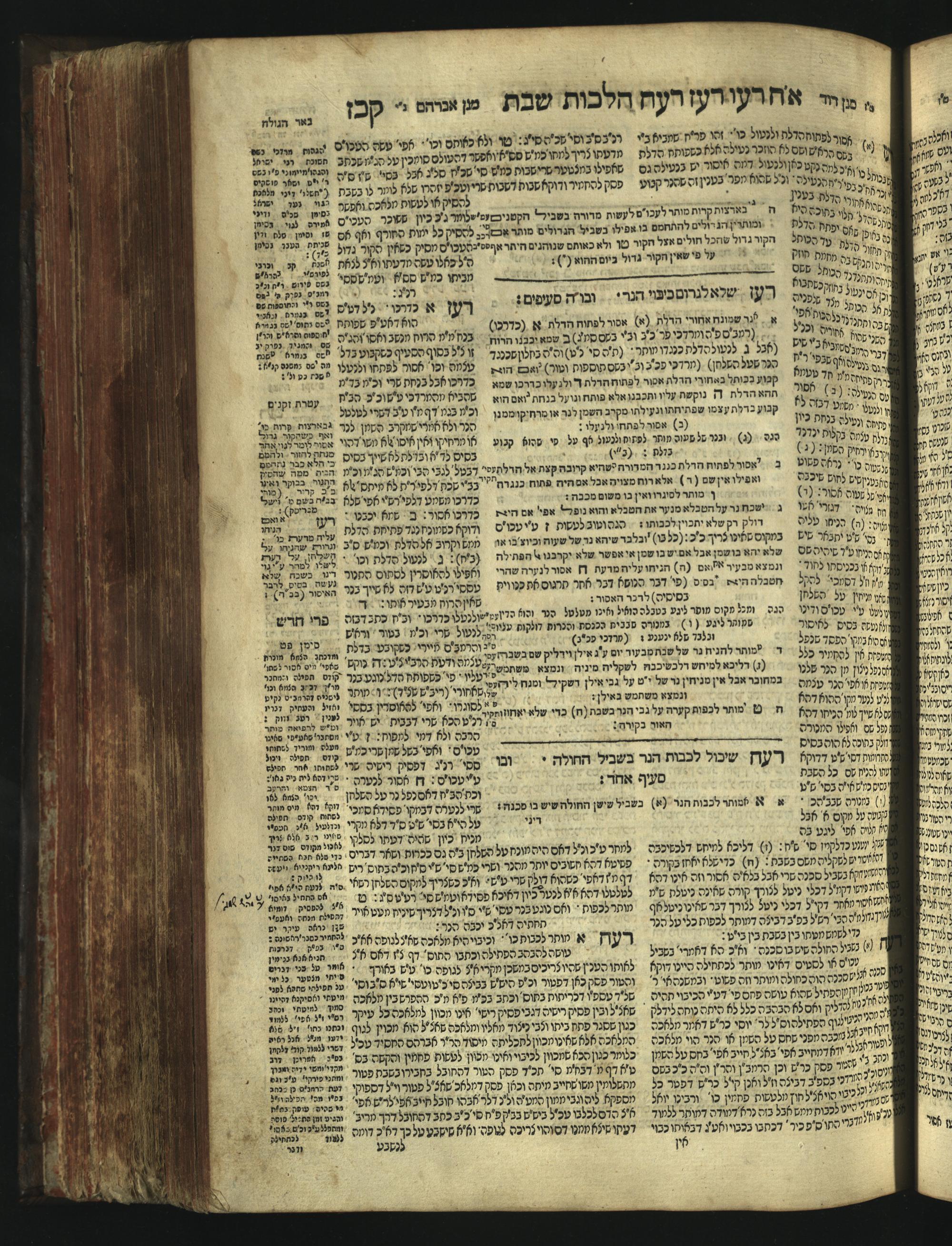 Sefer Magine erets : ... ʿal ha-Shulḥan ʿarukh ... Oraḥ ḥayim ... / ... ha-lo hemah ha-meʾorot ha-gedolim ... ha-shem ha-eḥad Magen Daṿid h.h. ha-gaʾon ... Daṿid ... baʿal ha-meḥaber sefer Ṭure zahav ṿe-shem ha-sheni Magen Avraham h.h. ... Avraham Segal Gumbiner z.l. dayan di-ḳ.ḳ. Ḳalish ... ṿe-ʿavar ʿalehem ʿAṭeret zeḳenim ... Mendel ... she-hirbits torato be-ḳ.ḳ. Ḳroṭoshin ben ha-katsin ... Zalman Fish Hoif mi-ḳ.ḳ. Ṿina: ... ha-ʿamadnu be-tsedo Beʾer ha-golah ... ṿe-hosafnu be-zeh ha-sefer ... Peri ḥadash ʿim ha-liḳuṭim ....ספר מגיני ארץ : ... על השלחן ערוך ... אורח חיים ... / ... הלא המה המאורות הגדולים ... השם האחד מגן דוד ... ה״ה הגאון ... דוד ... בעל המחבר ספר טורי זהב ושם השני מגן אברהם ה״ה ... אברהם סג״ל גומבינר ... דיין דק״ק קאליש ...ועבר עליהם עטרת זקנים ... מענדל ... שהרביץ תורתו בק״ק קראטשין בן הקצין ... זלמן פיש הויף מק״ק ווינא: העמדנו בצדו באר הגולה ... והוספנו בזה הספר ... פרי חדש עם הלקוטים ...