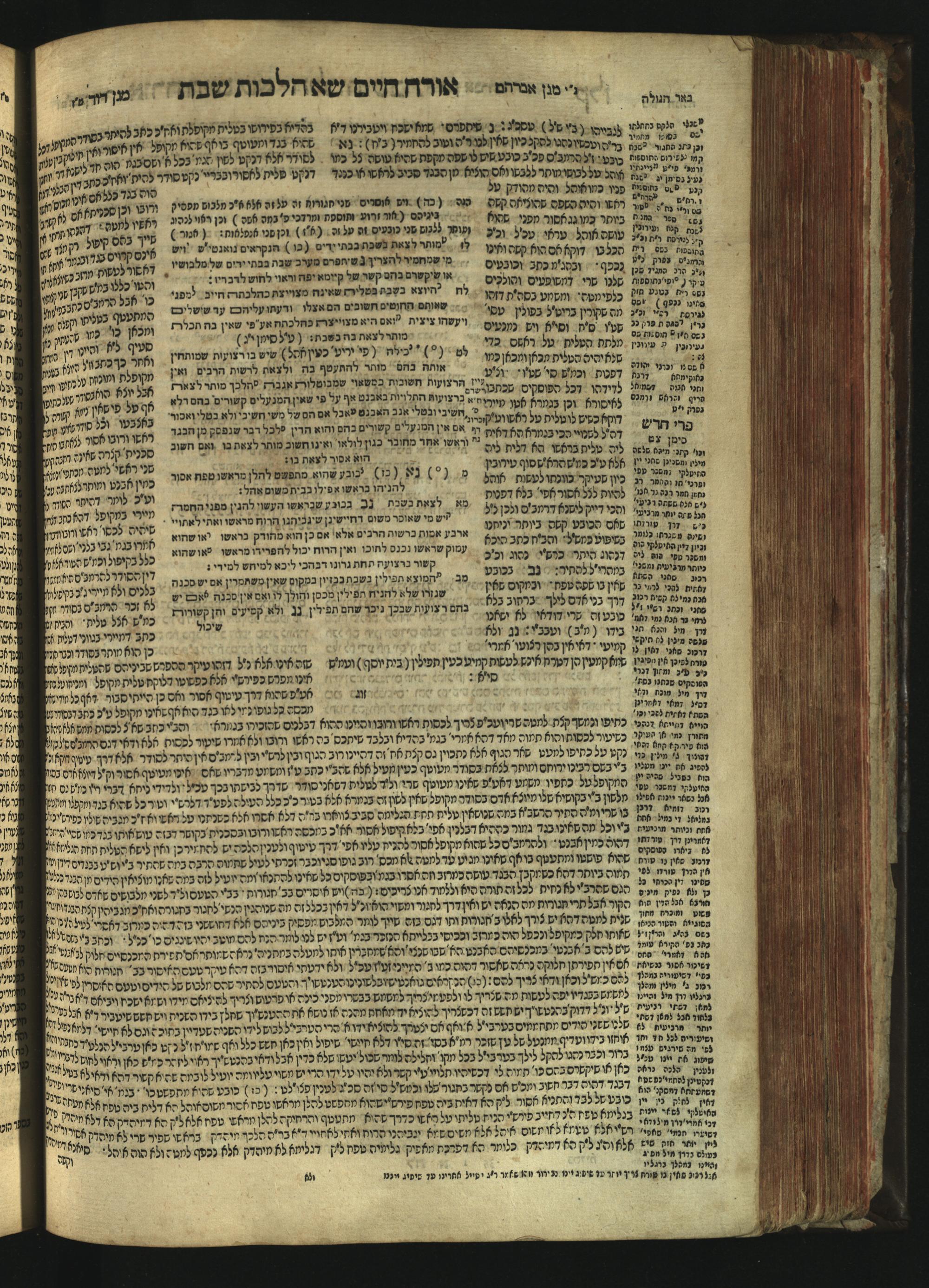 Sefer Magine erets : ... ʿal ha-Shulḥan ʿarukh ... Oraḥ ḥayim ... / ... ha-lo hemah ha-meʾorot ha-gedolim ... ha-shem ha-eḥad Magen Daṿid h.h. ha-gaʾon ... Daṿid ... baʿal ha-meḥaber sefer Ṭure zahav ṿe-shem ha-sheni Magen Avraham h.h. ... Avraham Segal Gumbiner z.l. dayan di-ḳ.ḳ. Ḳalish ... ṿe-ʿavar ʿalehem ʿAṭeret zeḳenim ... Mendel ... she-hirbits torato be-ḳ.ḳ. Ḳroṭoshin ben ha-katsin ... Zalman Fish Hoif mi-ḳ.ḳ. Ṿina: ... ha-ʿamadnu be-tsedo Beʾer ha-golah ... ṿe-hosafnu be-zeh ha-sefer ... Peri ḥadash ʿim ha-liḳuṭim ....ספר מגיני ארץ : ... על השלחן ערוך ... אורח חיים ... / ... הלא המה המאורות הגדולים ... השם האחד מגן דוד ... ה״ה הגאון ... דוד ... בעל המחבר ספר טורי זהב ושם השני מגן אברהם ה״ה ... אברהם סג״ל גומבינר ... דיין דק״ק קאליש ...ועבר עליהם עטרת זקנים ... מענדל ... שהרביץ תורתו בק״ק קראטשין בן הקצין ... זלמן פיש הויף מק״ק ווינא: העמדנו בצדו באר הגולה ... והוספנו בזה הספר ... פרי חדש עם הלקוטים ...