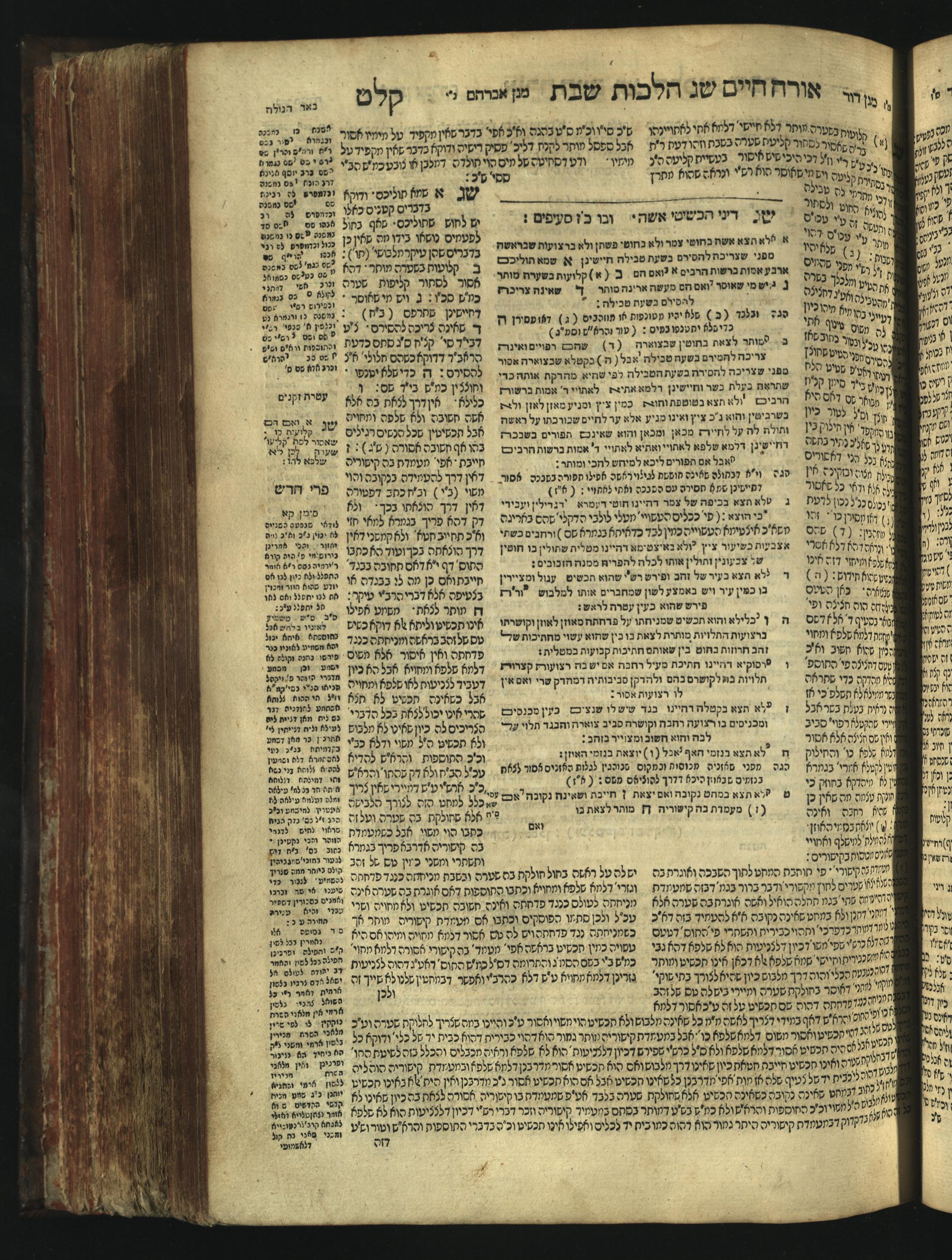 Sefer Magine erets : ... ʿal ha-Shulḥan ʿarukh ... Oraḥ ḥayim ... / ... ha-lo hemah ha-meʾorot ha-gedolim ... ha-shem ha-eḥad Magen Daṿid h.h. ha-gaʾon ... Daṿid ... baʿal ha-meḥaber sefer Ṭure zahav ṿe-shem ha-sheni Magen Avraham h.h. ... Avraham Segal Gumbiner z.l. dayan di-ḳ.ḳ. Ḳalish ... ṿe-ʿavar ʿalehem ʿAṭeret zeḳenim ... Mendel ... she-hirbits torato be-ḳ.ḳ. Ḳroṭoshin ben ha-katsin ... Zalman Fish Hoif mi-ḳ.ḳ. Ṿina: ... ha-ʿamadnu be-tsedo Beʾer ha-golah ... ṿe-hosafnu be-zeh ha-sefer ... Peri ḥadash ʿim ha-liḳuṭim ....ספר מגיני ארץ : ... על השלחן ערוך ... אורח חיים ... / ... הלא המה המאורות הגדולים ... השם האחד מגן דוד ... ה״ה הגאון ... דוד ... בעל המחבר ספר טורי זהב ושם השני מגן אברהם ה״ה ... אברהם סג״ל גומבינר ... דיין דק״ק קאליש ...ועבר עליהם עטרת זקנים ... מענדל ... שהרביץ תורתו בק״ק קראטשין בן הקצין ... זלמן פיש הויף מק״ק ווינא: העמדנו בצדו באר הגולה ... והוספנו בזה הספר ... פרי חדש עם הלקוטים ...