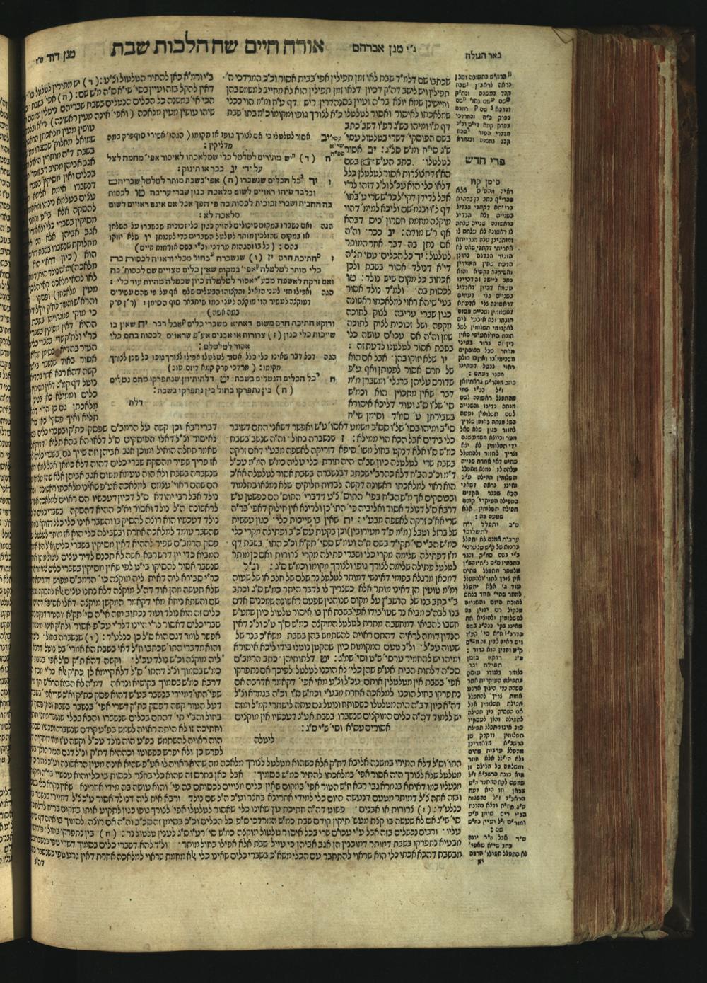 Sefer Magine erets : ... ʿal ha-Shulḥan ʿarukh ... Oraḥ ḥayim ... / ... ha-lo hemah ha-meʾorot ha-gedolim ... ha-shem ha-eḥad Magen Daṿid h.h. ha-gaʾon ... Daṿid ... baʿal ha-meḥaber sefer Ṭure zahav ṿe-shem ha-sheni Magen Avraham h.h. ... Avraham Segal Gumbiner z.l. dayan di-ḳ.ḳ. Ḳalish ... ṿe-ʿavar ʿalehem ʿAṭeret zeḳenim ... Mendel ... she-hirbits torato be-ḳ.ḳ. Ḳroṭoshin ben ha-katsin ... Zalman Fish Hoif mi-ḳ.ḳ. Ṿina: ... ha-ʿamadnu be-tsedo Beʾer ha-golah ... ṿe-hosafnu be-zeh ha-sefer ... Peri ḥadash ʿim ha-liḳuṭim ....ספר מגיני ארץ : ... על השלחן ערוך ... אורח חיים ... / ... הלא המה המאורות הגדולים ... השם האחד מגן דוד ... ה״ה הגאון ... דוד ... בעל המחבר ספר טורי זהב ושם השני מגן אברהם ה״ה ... אברהם סג״ל גומבינר ... דיין דק״ק קאליש ...ועבר עליהם עטרת זקנים ... מענדל ... שהרביץ תורתו בק״ק קראטשין בן הקצין ... זלמן פיש הויף מק״ק ווינא: העמדנו בצדו באר הגולה ... והוספנו בזה הספר ... פרי חדש עם הלקוטים ...