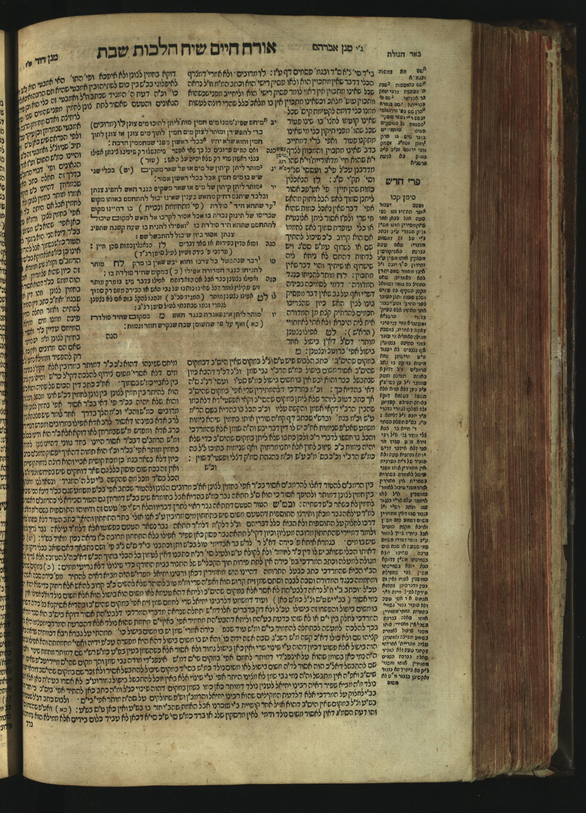 Sefer Magine erets : ... ʿal ha-Shulḥan ʿarukh ... Oraḥ ḥayim ... / ... ha-lo hemah ha-meʾorot ha-gedolim ... ha-shem ha-eḥad Magen Daṿid h.h. ha-gaʾon ... Daṿid ... baʿal ha-meḥaber sefer Ṭure zahav ṿe-shem ha-sheni Magen Avraham h.h. ... Avraham Segal Gumbiner z.l. dayan di-ḳ.ḳ. Ḳalish ... ṿe-ʿavar ʿalehem ʿAṭeret zeḳenim ... Mendel ... she-hirbits torato be-ḳ.ḳ. Ḳroṭoshin ben ha-katsin ... Zalman Fish Hoif mi-ḳ.ḳ. Ṿina: ... ha-ʿamadnu be-tsedo Beʾer ha-golah ... ṿe-hosafnu be-zeh ha-sefer ... Peri ḥadash ʿim ha-liḳuṭim ....ספר מגיני ארץ : ... על השלחן ערוך ... אורח חיים ... / ... הלא המה המאורות הגדולים ... השם האחד מגן דוד ... ה״ה הגאון ... דוד ... בעל המחבר ספר טורי זהב ושם השני מגן אברהם ה״ה ... אברהם סג״ל גומבינר ... דיין דק״ק קאליש ...ועבר עליהם עטרת זקנים ... מענדל ... שהרביץ תורתו בק״ק קראטשין בן הקצין ... זלמן פיש הויף מק״ק ווינא: העמדנו בצדו באר הגולה ... והוספנו בזה הספר ... פרי חדש עם הלקוטים ...