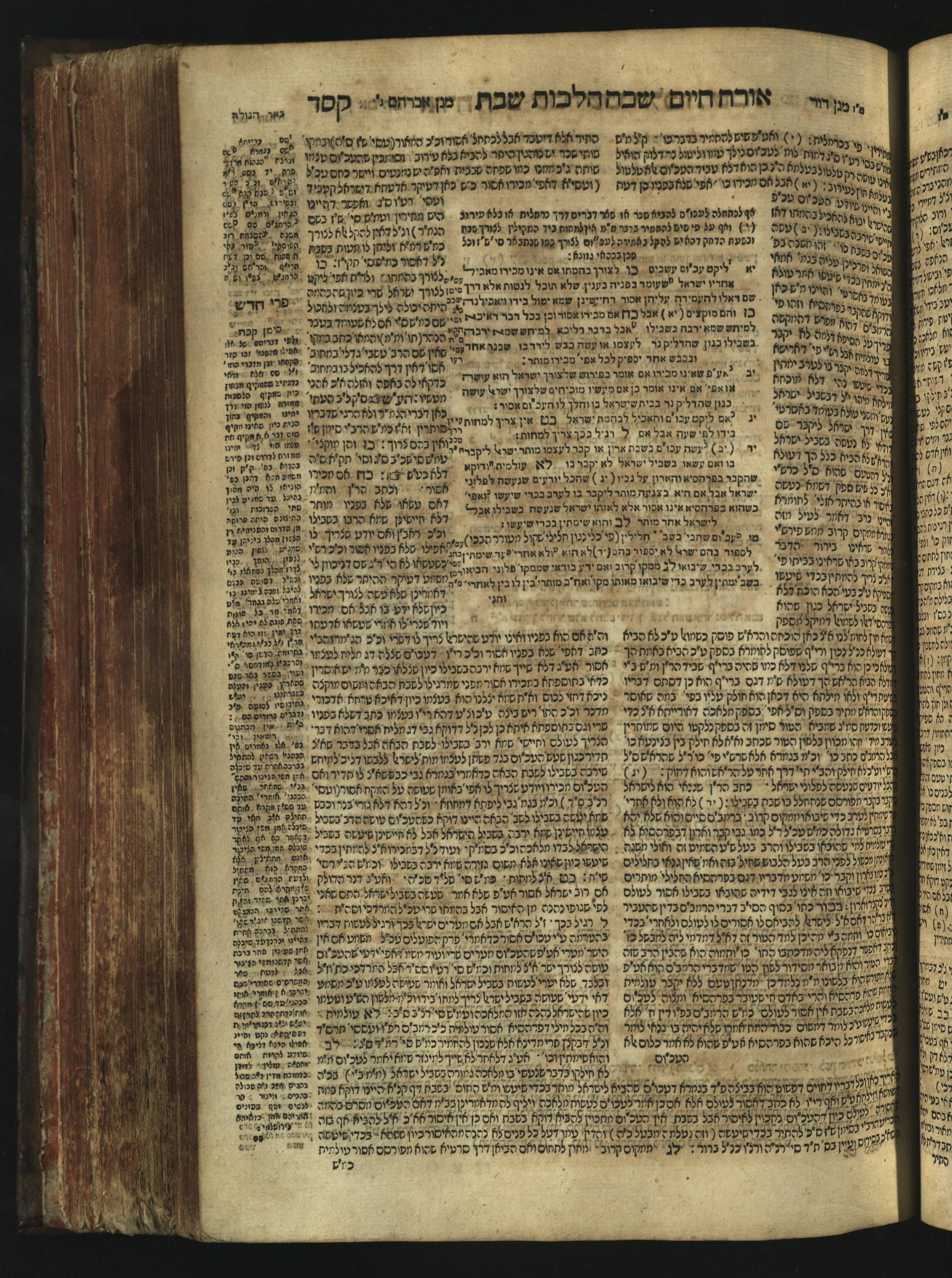 Sefer Magine erets : ... ʿal ha-Shulḥan ʿarukh ... Oraḥ ḥayim ... / ... ha-lo hemah ha-meʾorot ha-gedolim ... ha-shem ha-eḥad Magen Daṿid h.h. ha-gaʾon ... Daṿid ... baʿal ha-meḥaber sefer Ṭure zahav ṿe-shem ha-sheni Magen Avraham h.h. ... Avraham Segal Gumbiner z.l. dayan di-ḳ.ḳ. Ḳalish ... ṿe-ʿavar ʿalehem ʿAṭeret zeḳenim ... Mendel ... she-hirbits torato be-ḳ.ḳ. Ḳroṭoshin ben ha-katsin ... Zalman Fish Hoif mi-ḳ.ḳ. Ṿina: ... ha-ʿamadnu be-tsedo Beʾer ha-golah ... ṿe-hosafnu be-zeh ha-sefer ... Peri ḥadash ʿim ha-liḳuṭim ....ספר מגיני ארץ : ... על השלחן ערוך ... אורח חיים ... / ... הלא המה המאורות הגדולים ... השם האחד מגן דוד ... ה״ה הגאון ... דוד ... בעל המחבר ספר טורי זהב ושם השני מגן אברהם ה״ה ... אברהם סג״ל גומבינר ... דיין דק״ק קאליש ...ועבר עליהם עטרת זקנים ... מענדל ... שהרביץ תורתו בק״ק קראטשין בן הקצין ... זלמן פיש הויף מק״ק ווינא: העמדנו בצדו באר הגולה ... והוספנו בזה הספר ... פרי חדש עם הלקוטים ...