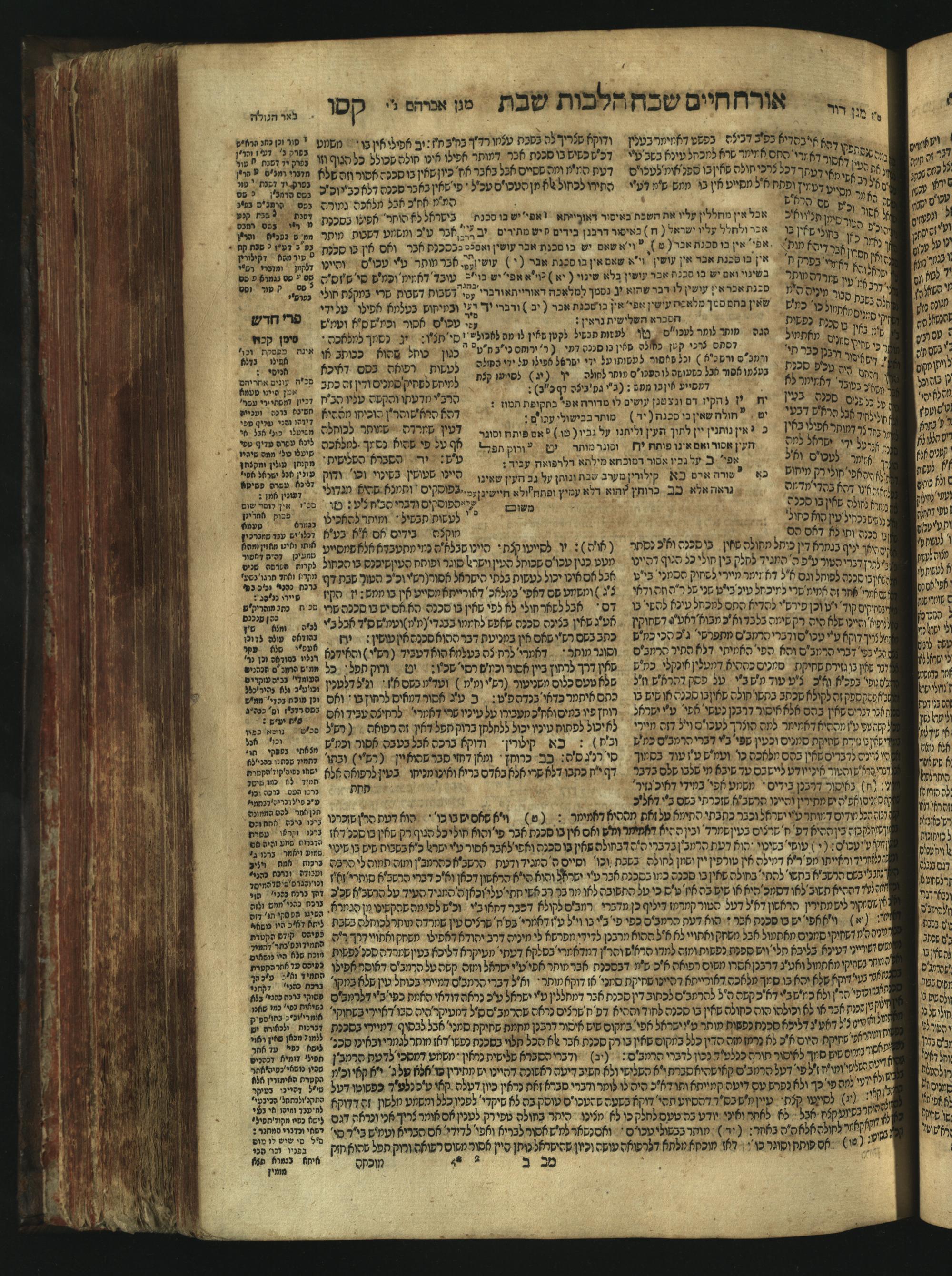 Sefer Magine erets : ... ʿal ha-Shulḥan ʿarukh ... Oraḥ ḥayim ... / ... ha-lo hemah ha-meʾorot ha-gedolim ... ha-shem ha-eḥad Magen Daṿid h.h. ha-gaʾon ... Daṿid ... baʿal ha-meḥaber sefer Ṭure zahav ṿe-shem ha-sheni Magen Avraham h.h. ... Avraham Segal Gumbiner z.l. dayan di-ḳ.ḳ. Ḳalish ... ṿe-ʿavar ʿalehem ʿAṭeret zeḳenim ... Mendel ... she-hirbits torato be-ḳ.ḳ. Ḳroṭoshin ben ha-katsin ... Zalman Fish Hoif mi-ḳ.ḳ. Ṿina: ... ha-ʿamadnu be-tsedo Beʾer ha-golah ... ṿe-hosafnu be-zeh ha-sefer ... Peri ḥadash ʿim ha-liḳuṭim ....ספר מגיני ארץ : ... על השלחן ערוך ... אורח חיים ... / ... הלא המה המאורות הגדולים ... השם האחד מגן דוד ... ה״ה הגאון ... דוד ... בעל המחבר ספר טורי זהב ושם השני מגן אברהם ה״ה ... אברהם סג״ל גומבינר ... דיין דק״ק קאליש ...ועבר עליהם עטרת זקנים ... מענדל ... שהרביץ תורתו בק״ק קראטשין בן הקצין ... זלמן פיש הויף מק״ק ווינא: העמדנו בצדו באר הגולה ... והוספנו בזה הספר ... פרי חדש עם הלקוטים ...