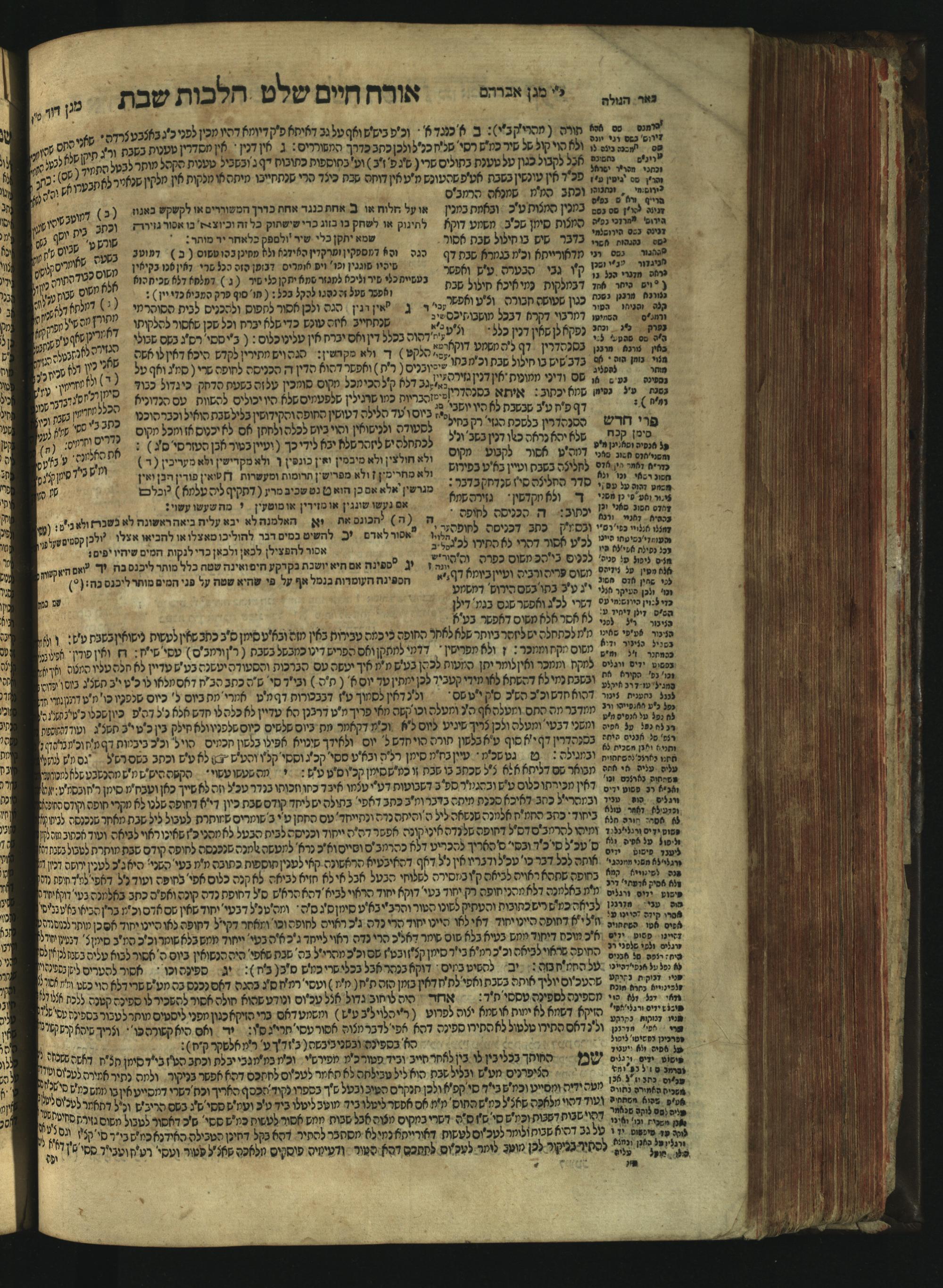 Sefer Magine erets : ... ʿal ha-Shulḥan ʿarukh ... Oraḥ ḥayim ... / ... ha-lo hemah ha-meʾorot ha-gedolim ... ha-shem ha-eḥad Magen Daṿid h.h. ha-gaʾon ... Daṿid ... baʿal ha-meḥaber sefer Ṭure zahav ṿe-shem ha-sheni Magen Avraham h.h. ... Avraham Segal Gumbiner z.l. dayan di-ḳ.ḳ. Ḳalish ... ṿe-ʿavar ʿalehem ʿAṭeret zeḳenim ... Mendel ... she-hirbits torato be-ḳ.ḳ. Ḳroṭoshin ben ha-katsin ... Zalman Fish Hoif mi-ḳ.ḳ. Ṿina: ... ha-ʿamadnu be-tsedo Beʾer ha-golah ... ṿe-hosafnu be-zeh ha-sefer ... Peri ḥadash ʿim ha-liḳuṭim ....ספר מגיני ארץ : ... על השלחן ערוך ... אורח חיים ... / ... הלא המה המאורות הגדולים ... השם האחד מגן דוד ... ה״ה הגאון ... דוד ... בעל המחבר ספר טורי זהב ושם השני מגן אברהם ה״ה ... אברהם סג״ל גומבינר ... דיין דק״ק קאליש ...ועבר עליהם עטרת זקנים ... מענדל ... שהרביץ תורתו בק״ק קראטשין בן הקצין ... זלמן פיש הויף מק״ק ווינא: העמדנו בצדו באר הגולה ... והוספנו בזה הספר ... פרי חדש עם הלקוטים ...