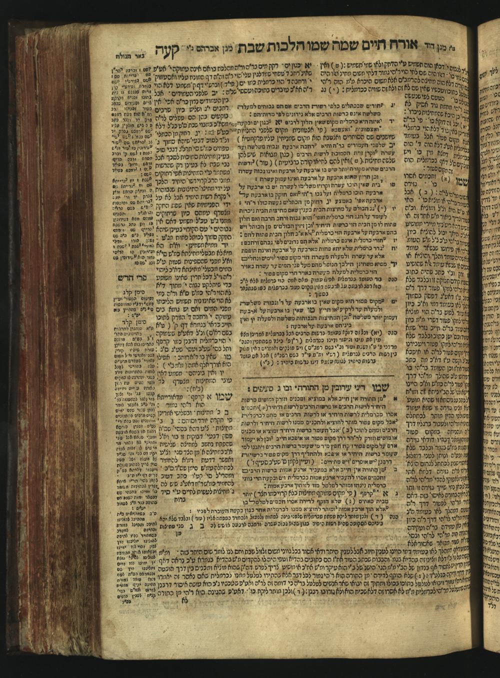 Sefer Magine erets : ... ʿal ha-Shulḥan ʿarukh ... Oraḥ ḥayim ... / ... ha-lo hemah ha-meʾorot ha-gedolim ... ha-shem ha-eḥad Magen Daṿid h.h. ha-gaʾon ... Daṿid ... baʿal ha-meḥaber sefer Ṭure zahav ṿe-shem ha-sheni Magen Avraham h.h. ... Avraham Segal Gumbiner z.l. dayan di-ḳ.ḳ. Ḳalish ... ṿe-ʿavar ʿalehem ʿAṭeret zeḳenim ... Mendel ... she-hirbits torato be-ḳ.ḳ. Ḳroṭoshin ben ha-katsin ... Zalman Fish Hoif mi-ḳ.ḳ. Ṿina: ... ha-ʿamadnu be-tsedo Beʾer ha-golah ... ṿe-hosafnu be-zeh ha-sefer ... Peri ḥadash ʿim ha-liḳuṭim ....ספר מגיני ארץ : ... על השלחן ערוך ... אורח חיים ... / ... הלא המה המאורות הגדולים ... השם האחד מגן דוד ... ה״ה הגאון ... דוד ... בעל המחבר ספר טורי זהב ושם השני מגן אברהם ה״ה ... אברהם סג״ל גומבינר ... דיין דק״ק קאליש ...ועבר עליהם עטרת זקנים ... מענדל ... שהרביץ תורתו בק״ק קראטשין בן הקצין ... זלמן פיש הויף מק״ק ווינא: העמדנו בצדו באר הגולה ... והוספנו בזה הספר ... פרי חדש עם הלקוטים ...