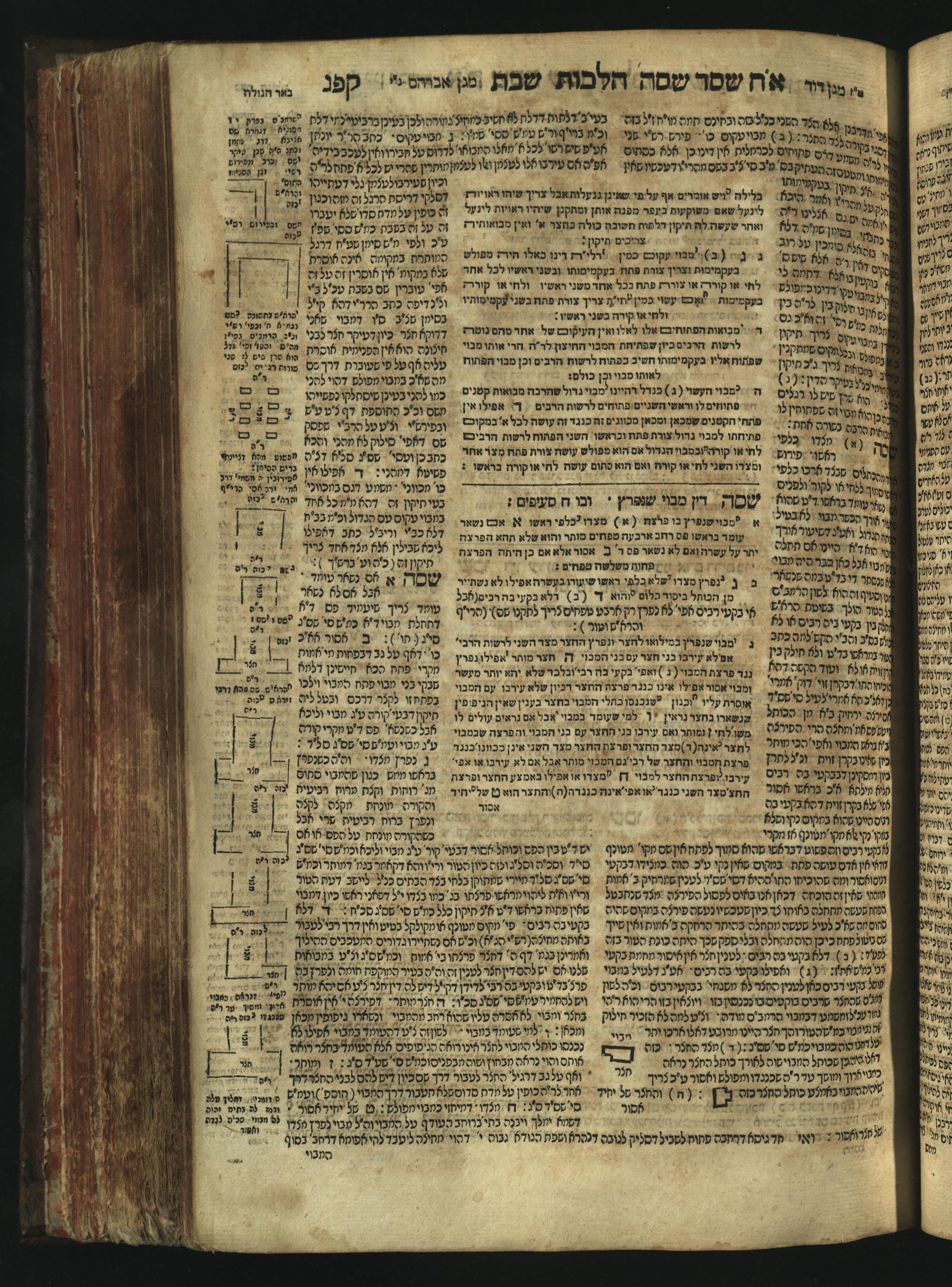 Sefer Magine erets : ... ʿal ha-Shulḥan ʿarukh ... Oraḥ ḥayim ... / ... ha-lo hemah ha-meʾorot ha-gedolim ... ha-shem ha-eḥad Magen Daṿid h.h. ha-gaʾon ... Daṿid ... baʿal ha-meḥaber sefer Ṭure zahav ṿe-shem ha-sheni Magen Avraham h.h. ... Avraham Segal Gumbiner z.l. dayan di-ḳ.ḳ. Ḳalish ... ṿe-ʿavar ʿalehem ʿAṭeret zeḳenim ... Mendel ... she-hirbits torato be-ḳ.ḳ. Ḳroṭoshin ben ha-katsin ... Zalman Fish Hoif mi-ḳ.ḳ. Ṿina: ... ha-ʿamadnu be-tsedo Beʾer ha-golah ... ṿe-hosafnu be-zeh ha-sefer ... Peri ḥadash ʿim ha-liḳuṭim ....ספר מגיני ארץ : ... על השלחן ערוך ... אורח חיים ... / ... הלא המה המאורות הגדולים ... השם האחד מגן דוד ... ה״ה הגאון ... דוד ... בעל המחבר ספר טורי זהב ושם השני מגן אברהם ה״ה ... אברהם סג״ל גומבינר ... דיין דק״ק קאליש ...ועבר עליהם עטרת זקנים ... מענדל ... שהרביץ תורתו בק״ק קראטשין בן הקצין ... זלמן פיש הויף מק״ק ווינא: העמדנו בצדו באר הגולה ... והוספנו בזה הספר ... פרי חדש עם הלקוטים ...