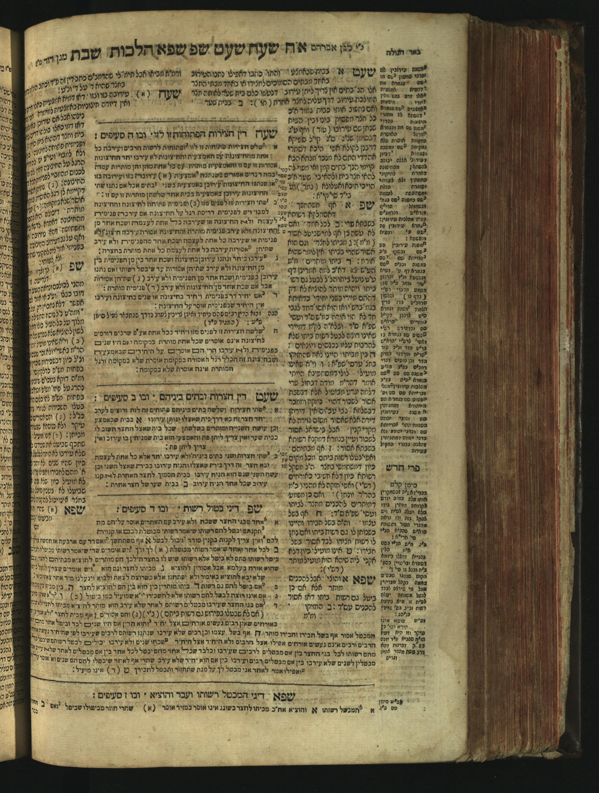 Sefer Magine erets : ... ʿal ha-Shulḥan ʿarukh ... Oraḥ ḥayim ... / ... ha-lo hemah ha-meʾorot ha-gedolim ... ha-shem ha-eḥad Magen Daṿid h.h. ha-gaʾon ... Daṿid ... baʿal ha-meḥaber sefer Ṭure zahav ṿe-shem ha-sheni Magen Avraham h.h. ... Avraham Segal Gumbiner z.l. dayan di-ḳ.ḳ. Ḳalish ... ṿe-ʿavar ʿalehem ʿAṭeret zeḳenim ... Mendel ... she-hirbits torato be-ḳ.ḳ. Ḳroṭoshin ben ha-katsin ... Zalman Fish Hoif mi-ḳ.ḳ. Ṿina: ... ha-ʿamadnu be-tsedo Beʾer ha-golah ... ṿe-hosafnu be-zeh ha-sefer ... Peri ḥadash ʿim ha-liḳuṭim ....ספר מגיני ארץ : ... על השלחן ערוך ... אורח חיים ... / ... הלא המה המאורות הגדולים ... השם האחד מגן דוד ... ה״ה הגאון ... דוד ... בעל המחבר ספר טורי זהב ושם השני מגן אברהם ה״ה ... אברהם סג״ל גומבינר ... דיין דק״ק קאליש ...ועבר עליהם עטרת זקנים ... מענדל ... שהרביץ תורתו בק״ק קראטשין בן הקצין ... זלמן פיש הויף מק״ק ווינא: העמדנו בצדו באר הגולה ... והוספנו בזה הספר ... פרי חדש עם הלקוטים ...
