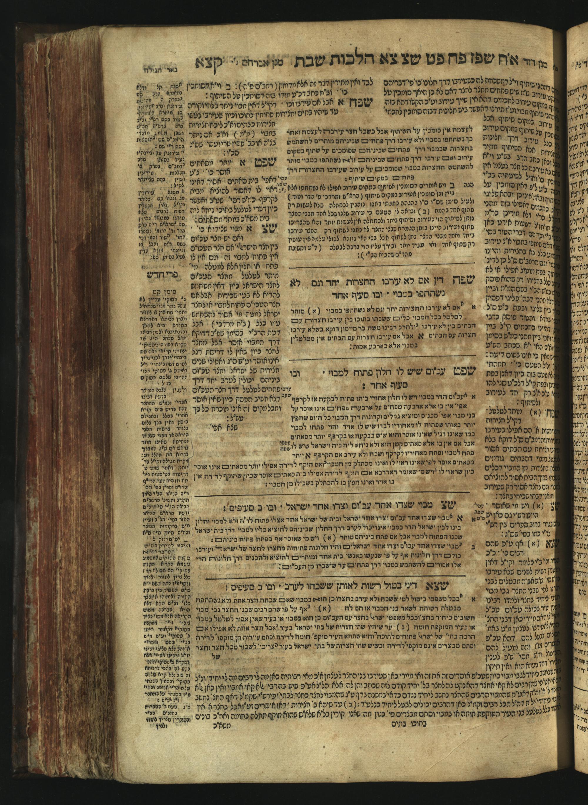 Sefer Magine erets : ... ʿal ha-Shulḥan ʿarukh ... Oraḥ ḥayim ... / ... ha-lo hemah ha-meʾorot ha-gedolim ... ha-shem ha-eḥad Magen Daṿid h.h. ha-gaʾon ... Daṿid ... baʿal ha-meḥaber sefer Ṭure zahav ṿe-shem ha-sheni Magen Avraham h.h. ... Avraham Segal Gumbiner z.l. dayan di-ḳ.ḳ. Ḳalish ... ṿe-ʿavar ʿalehem ʿAṭeret zeḳenim ... Mendel ... she-hirbits torato be-ḳ.ḳ. Ḳroṭoshin ben ha-katsin ... Zalman Fish Hoif mi-ḳ.ḳ. Ṿina: ... ha-ʿamadnu be-tsedo Beʾer ha-golah ... ṿe-hosafnu be-zeh ha-sefer ... Peri ḥadash ʿim ha-liḳuṭim ....ספר מגיני ארץ : ... על השלחן ערוך ... אורח חיים ... / ... הלא המה המאורות הגדולים ... השם האחד מגן דוד ... ה״ה הגאון ... דוד ... בעל המחבר ספר טורי זהב ושם השני מגן אברהם ה״ה ... אברהם סג״ל גומבינר ... דיין דק״ק קאליש ...ועבר עליהם עטרת זקנים ... מענדל ... שהרביץ תורתו בק״ק קראטשין בן הקצין ... זלמן פיש הויף מק״ק ווינא: העמדנו בצדו באר הגולה ... והוספנו בזה הספר ... פרי חדש עם הלקוטים ...