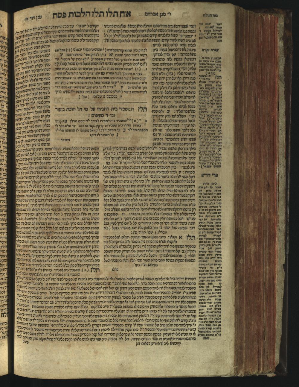 Sefer Magine erets : ... ʿal ha-Shulḥan ʿarukh ... Oraḥ ḥayim ... / ... ha-lo hemah ha-meʾorot ha-gedolim ... ha-shem ha-eḥad Magen Daṿid h.h. ha-gaʾon ... Daṿid ... baʿal ha-meḥaber sefer Ṭure zahav ṿe-shem ha-sheni Magen Avraham h.h. ... Avraham Segal Gumbiner z.l. dayan di-ḳ.ḳ. Ḳalish ... ṿe-ʿavar ʿalehem ʿAṭeret zeḳenim ... Mendel ... she-hirbits torato be-ḳ.ḳ. Ḳroṭoshin ben ha-katsin ... Zalman Fish Hoif mi-ḳ.ḳ. Ṿina: ... ha-ʿamadnu be-tsedo Beʾer ha-golah ... ṿe-hosafnu be-zeh ha-sefer ... Peri ḥadash ʿim ha-liḳuṭim ....ספר מגיני ארץ : ... על השלחן ערוך ... אורח חיים ... / ... הלא המה המאורות הגדולים ... השם האחד מגן דוד ... ה״ה הגאון ... דוד ... בעל המחבר ספר טורי זהב ושם השני מגן אברהם ה״ה ... אברהם סג״ל גומבינר ... דיין דק״ק קאליש ...ועבר עליהם עטרת זקנים ... מענדל ... שהרביץ תורתו בק״ק קראטשין בן הקצין ... זלמן פיש הויף מק״ק ווינא: העמדנו בצדו באר הגולה ... והוספנו בזה הספר ... פרי חדש עם הלקוטים ...