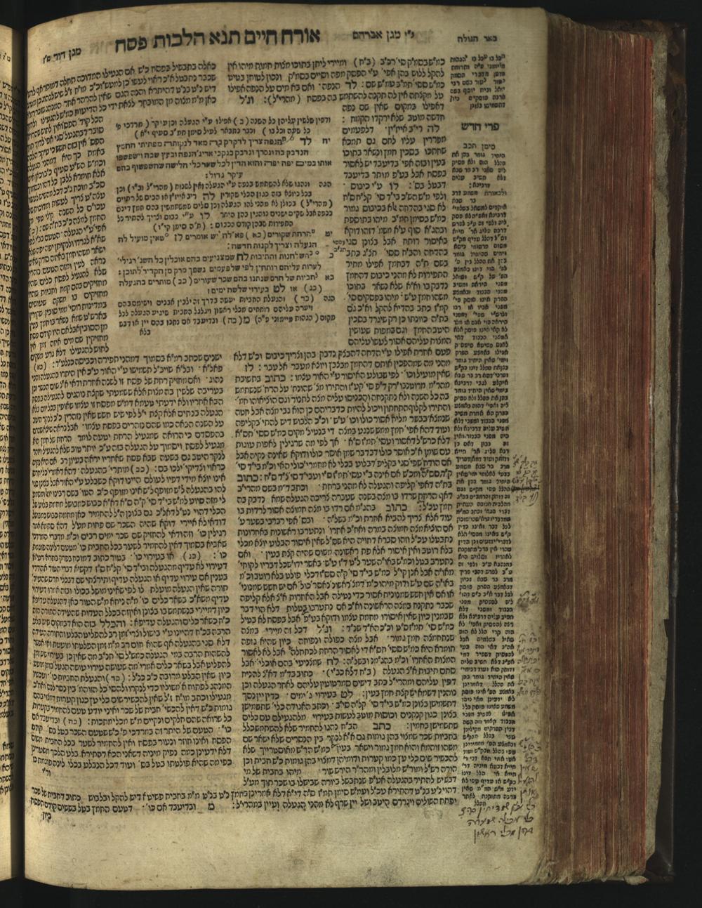 Sefer Magine erets : ... ʿal ha-Shulḥan ʿarukh ... Oraḥ ḥayim ... / ... ha-lo hemah ha-meʾorot ha-gedolim ... ha-shem ha-eḥad Magen Daṿid h.h. ha-gaʾon ... Daṿid ... baʿal ha-meḥaber sefer Ṭure zahav ṿe-shem ha-sheni Magen Avraham h.h. ... Avraham Segal Gumbiner z.l. dayan di-ḳ.ḳ. Ḳalish ... ṿe-ʿavar ʿalehem ʿAṭeret zeḳenim ... Mendel ... she-hirbits torato be-ḳ.ḳ. Ḳroṭoshin ben ha-katsin ... Zalman Fish Hoif mi-ḳ.ḳ. Ṿina: ... ha-ʿamadnu be-tsedo Beʾer ha-golah ... ṿe-hosafnu be-zeh ha-sefer ... Peri ḥadash ʿim ha-liḳuṭim ....ספר מגיני ארץ : ... על השלחן ערוך ... אורח חיים ... / ... הלא המה המאורות הגדולים ... השם האחד מגן דוד ... ה״ה הגאון ... דוד ... בעל המחבר ספר טורי זהב ושם השני מגן אברהם ה״ה ... אברהם סג״ל גומבינר ... דיין דק״ק קאליש ...ועבר עליהם עטרת זקנים ... מענדל ... שהרביץ תורתו בק״ק קראטשין בן הקצין ... זלמן פיש הויף מק״ק ווינא: העמדנו בצדו באר הגולה ... והוספנו בזה הספר ... פרי חדש עם הלקוטים ...